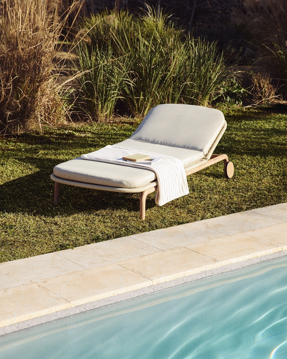 Шезлонг Alipa из массива акации и веревки цвета экрю
