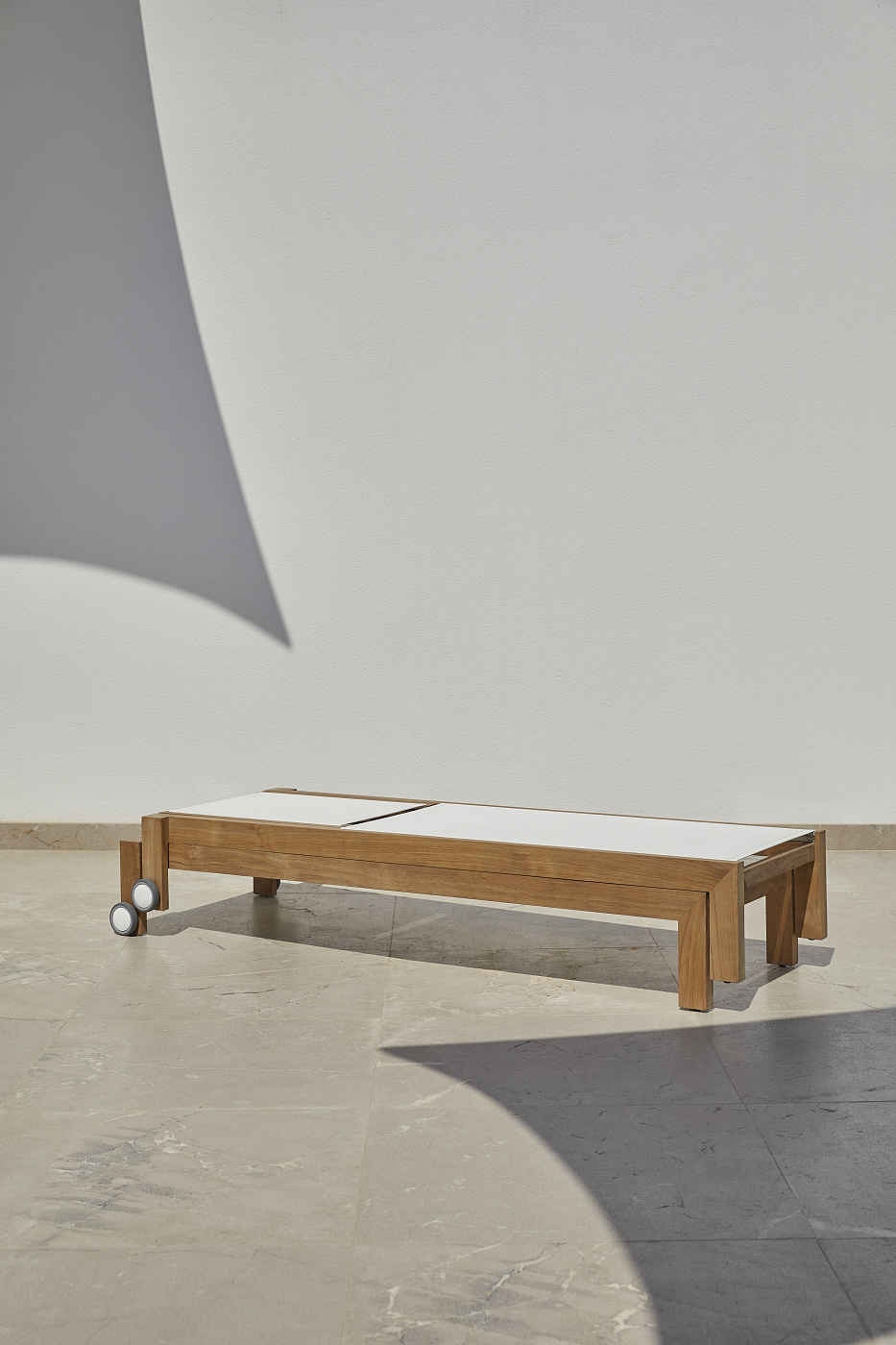 На первый взгляд, прямые линии и точность Bay, её архитектурные формы завораживают, также как ощущения от этого. Тиковое дерево придает Bay естественный компонент, который просит потрогать, погладить. Коллекция состоит из шезлонга и приставного столика, разработанных POINT Studio. Они вдохновлены атмосферой передающей морской дух яхт-клуба и переосмысление его для террас и садов. Bay предназначена для комбинирования с другими предметами и адаптируется к любой среде, классической или современной.