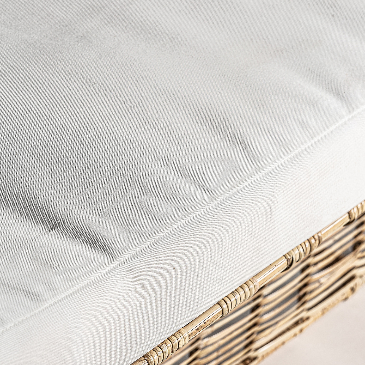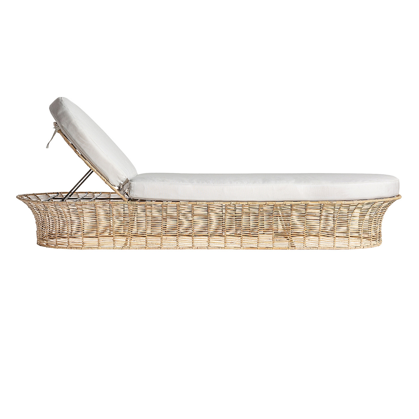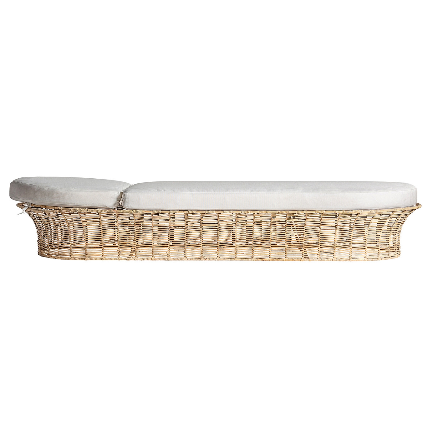 Релакс с ибицким шармом. Этот шезлонг в стиле бохо, изготовленный из светло-коричневого ротанга и пены, сочетает в себе естественный комфорт и идеально подходит для солнечных террас или уютных уголков. Ширина: 200 см, Глубина: 87 см, Высота: 25 см