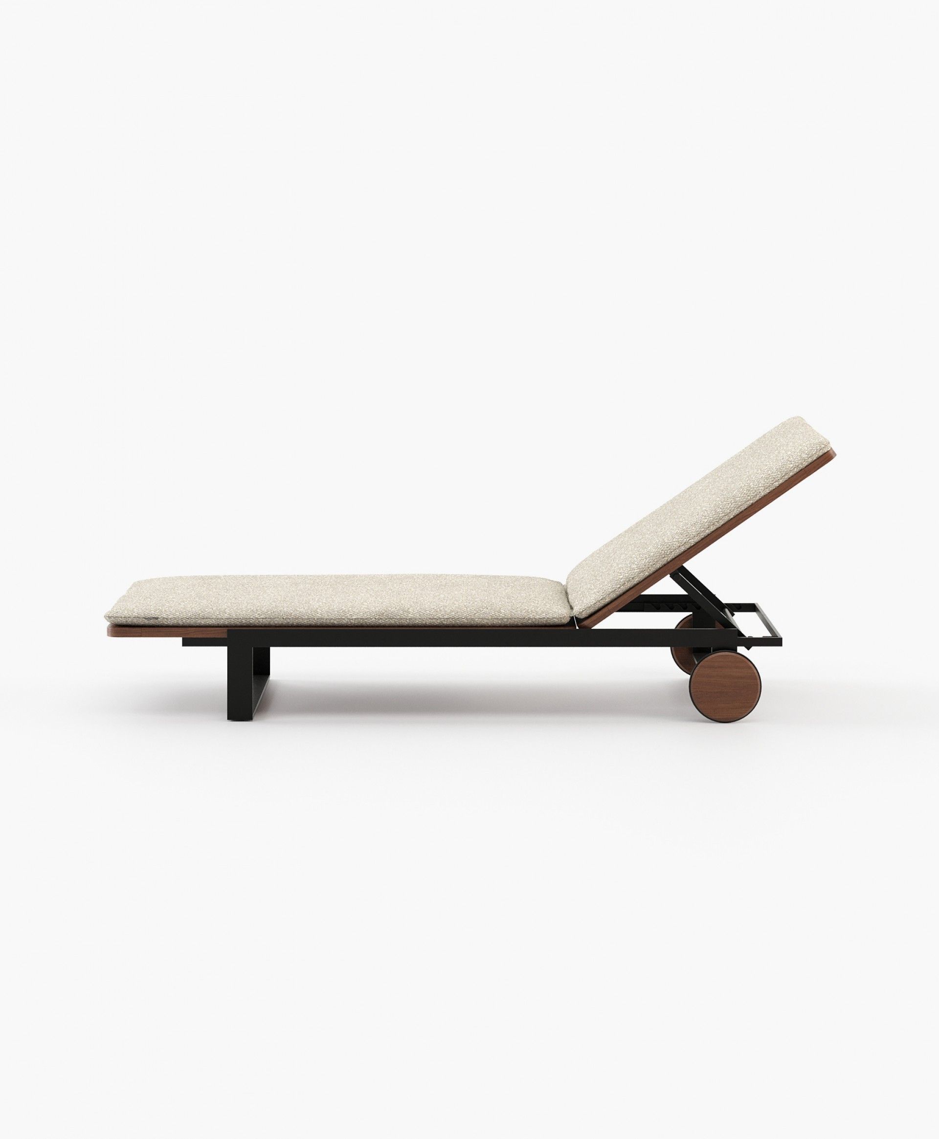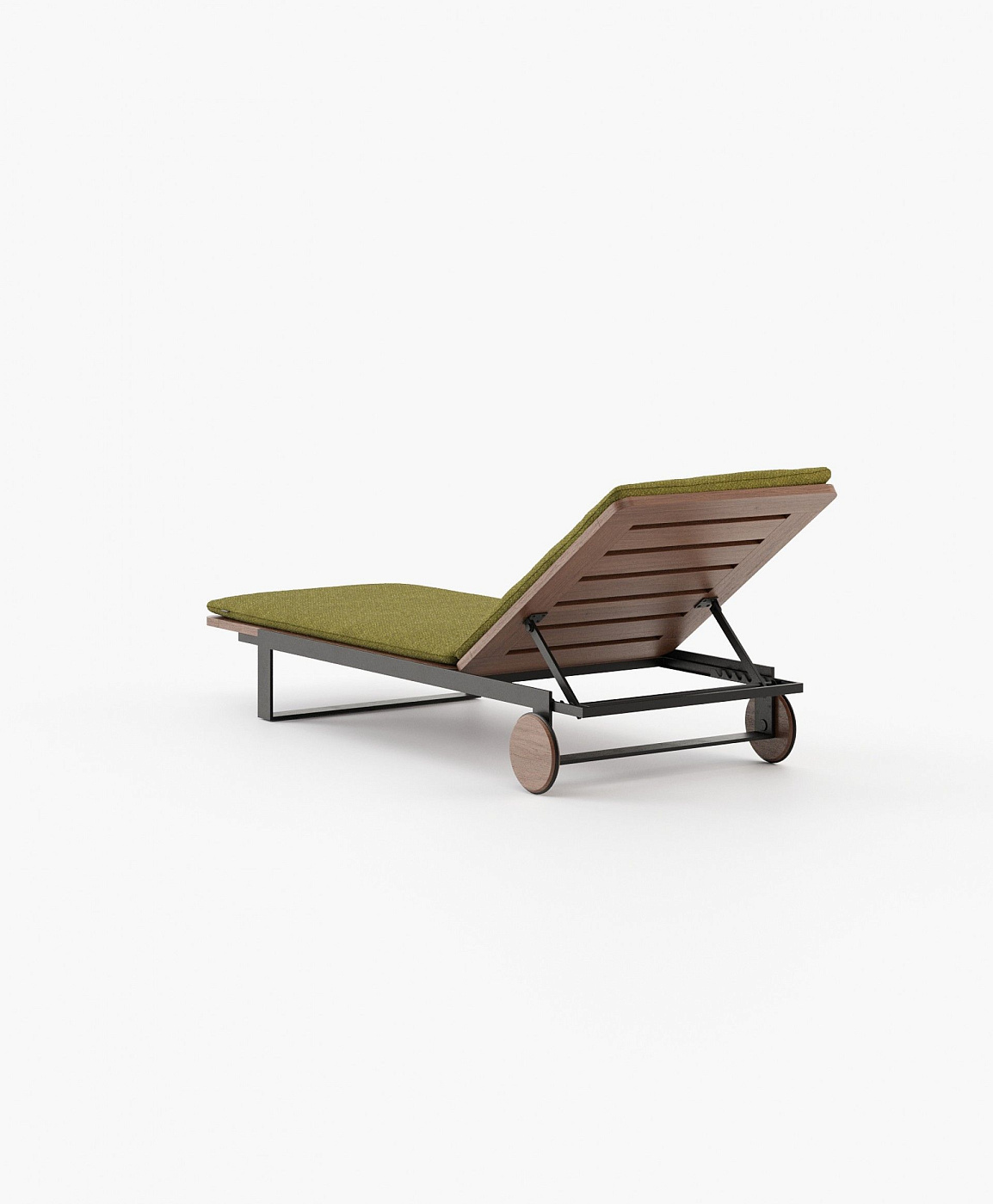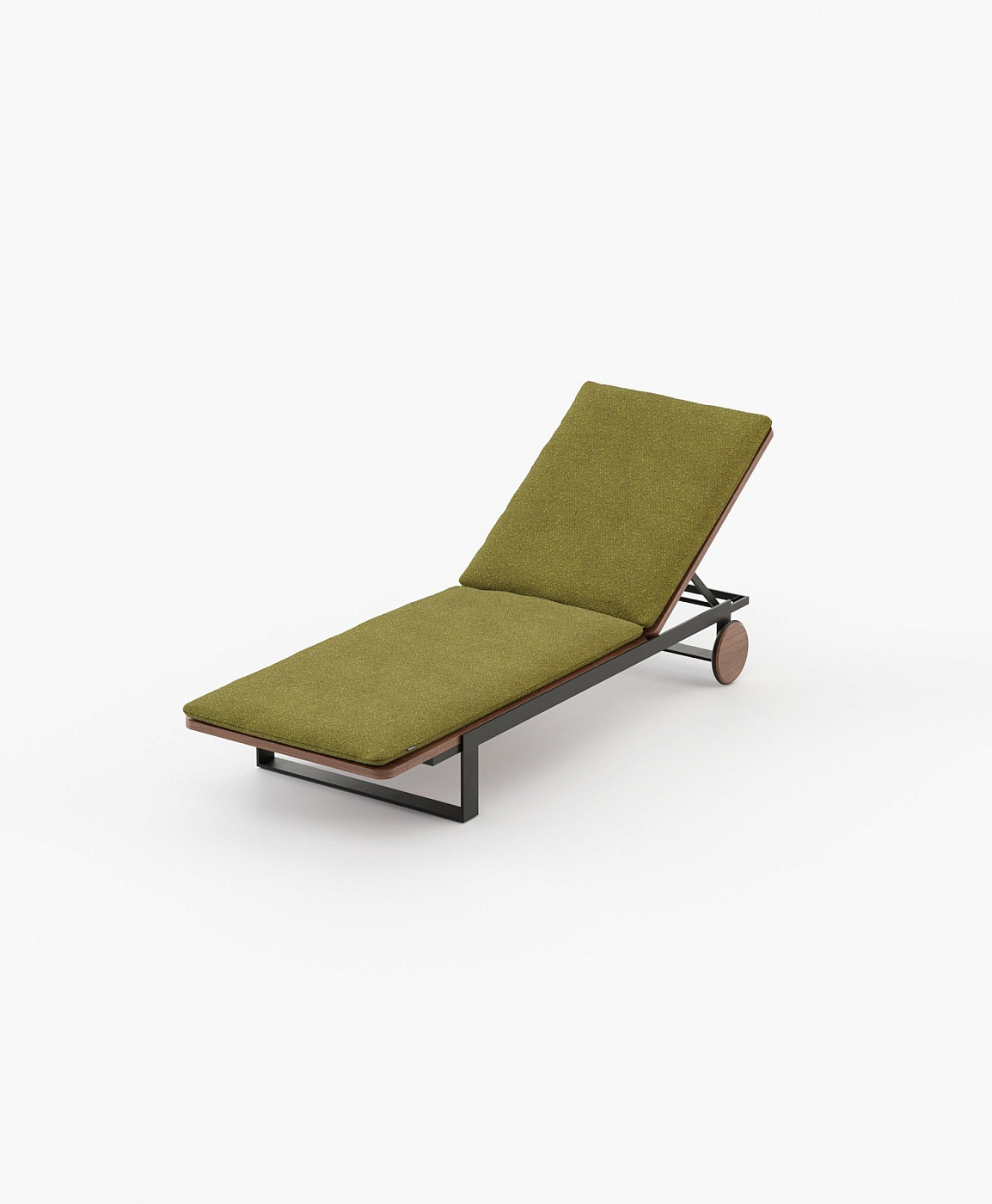 Для максимального комфорта и стиля на открытом воздухе этот современный шезлонг имеет текстурированную раму из черного железа с вставками из темного дерева Камбала. Этот шезлонг на колесиках предназначен для удобной транспортировки, позволяя расслабиться и наслаждаться отдыхом на свежем воздухе с непревзойденной элегантностью и комфортом.