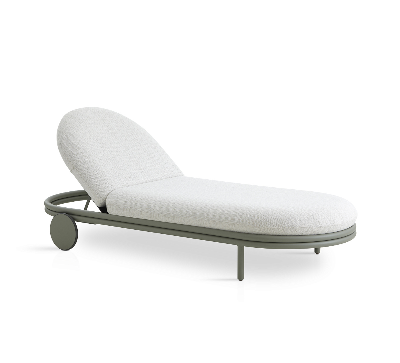 Шезлонг изготовлен из высокопрочной алюминиевой трубки. Возможность персонализации благодаря широкому выбору технических тканей, полностью подходящих для использования на открытом воздухе.