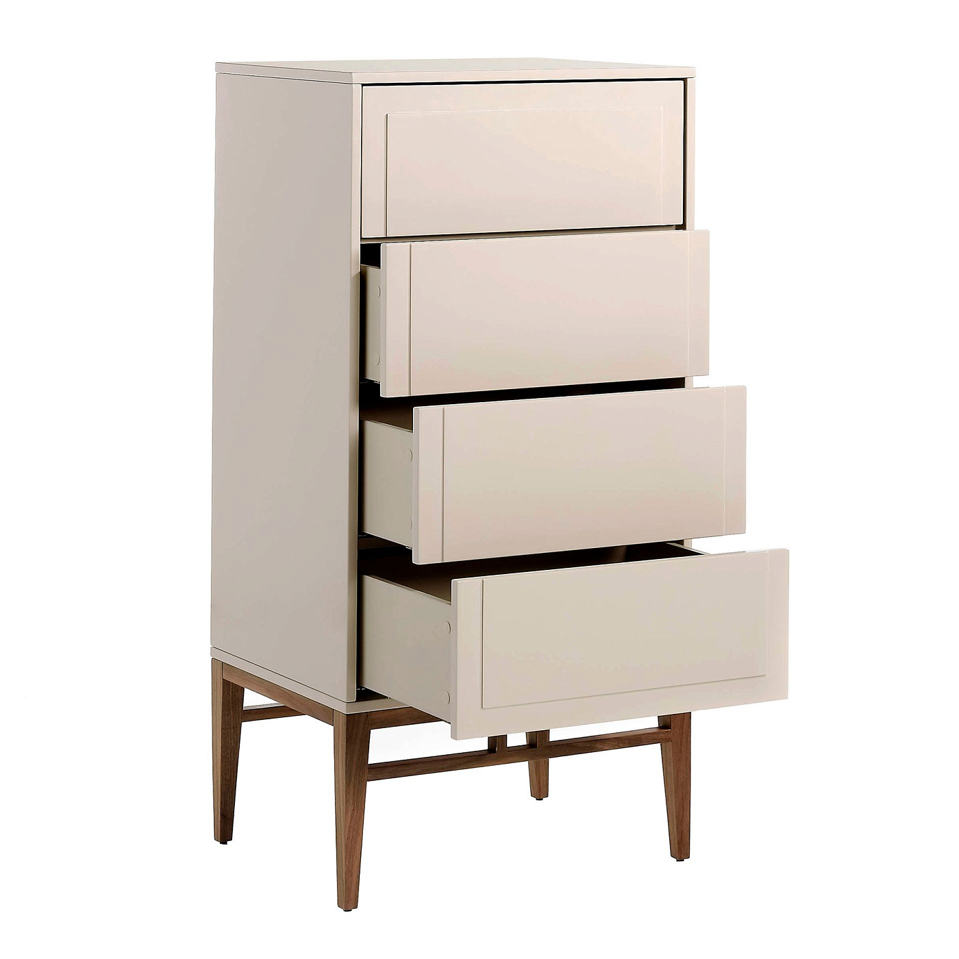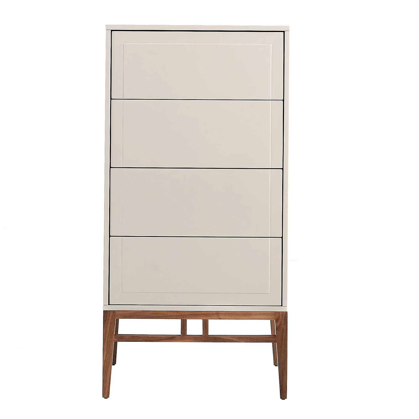 Шифоньер CP1709-A от фабрики Angel Cerda – лаконичный дизайн и внимание к деталям. Шифоньер CP1709-A заинтересует не только сторонников современной мебели, но и поклонников практичности и функциональности. Высокие устойчивые ножки – это гарантия надежности изделия, удобство во время уборки, больше света и пространства в комнате. Шифоньер CP1709-А имеет каркасную конструкцию. Материал корпуса – прочный МДФ, покрытый серо-бежевой лаковой краской (в базовом фабричном варианте). На фасаде есть декоративная выпуклость, визуально выделяющая ящики. В каркас вставлено четыре ящика одинаковой высоты. Они выдвижные, оснащены доводчиками на открывание и закрывание. Опора выполнена из орехового дерева натурального цвета с лаковым покрытием для износостойкости. Благодаря усиленной конструкции (изделие оснащено дополнительной пятой ножкой и поперечными перекладинами), обеспечивается надежность и прочность при эксплуатации с большими весовыми нагрузками. На каждой ножке предусмотрен металлический наконечник. Размеры: высота – 120 см, ширина – 60 см, глубина – 45 см. Вес изделия составляет 47 кг. Потребуется самостоятельная сборка (опора поставляется отдельно). Крепеж, инструкция входят в комплектацию. В коллекцию CP1709 также входит прикроватная тумбочка, туалетный столик и другие предметы мебели.
