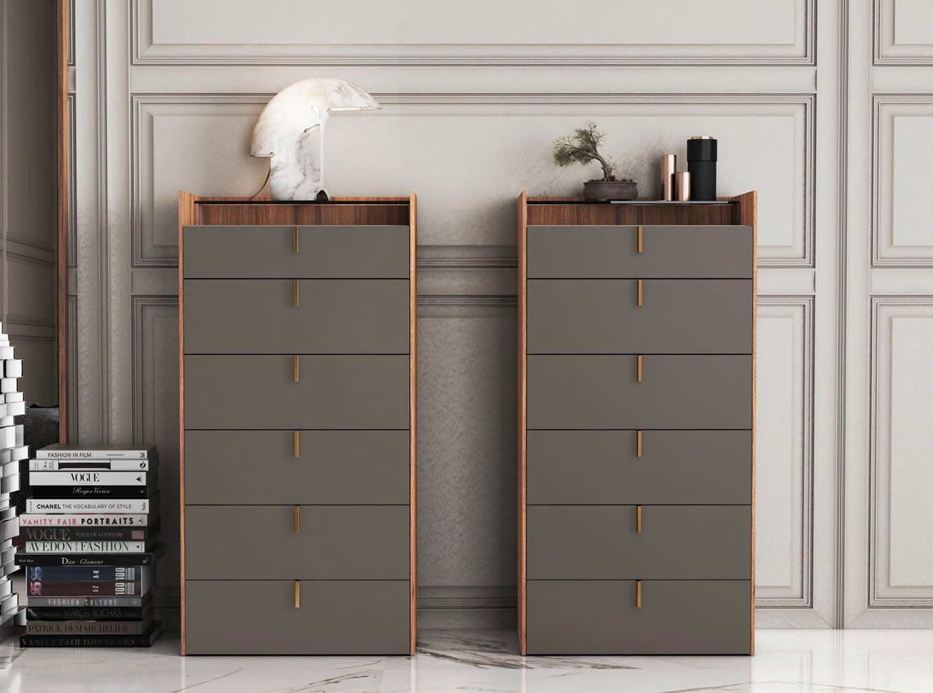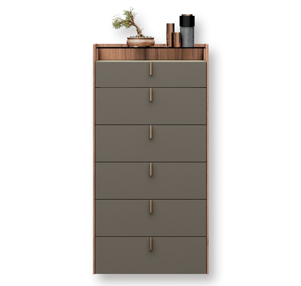 Вставка ручки в выдвижной ящик делает шифоньер TAO 6 уникальным элементом современного дизайна в каталоге EMEDE. Он оснащен направляющими для закрывания с подкладкой BLUM. В качестве аксессуаров добавлены боковые стенки и стеклянная столешница для придания набору большей прочности.