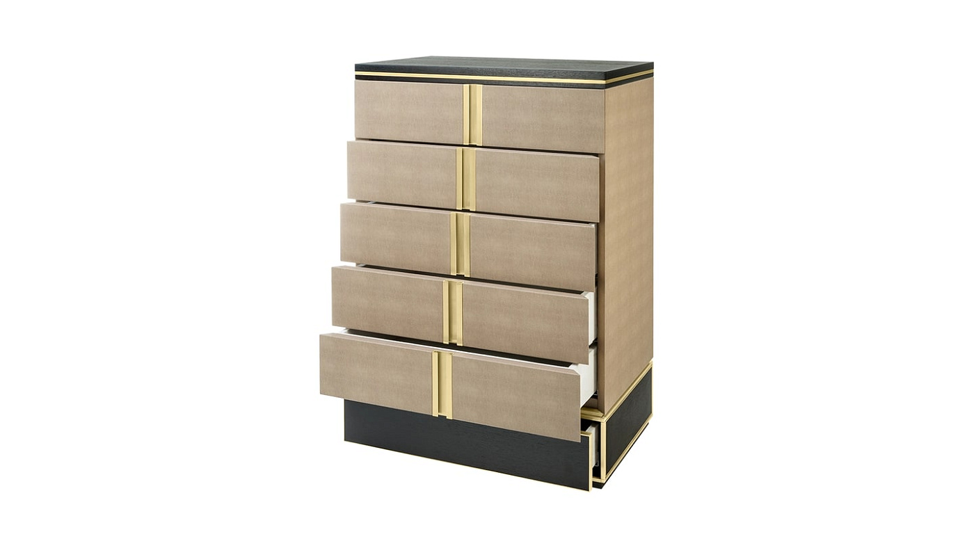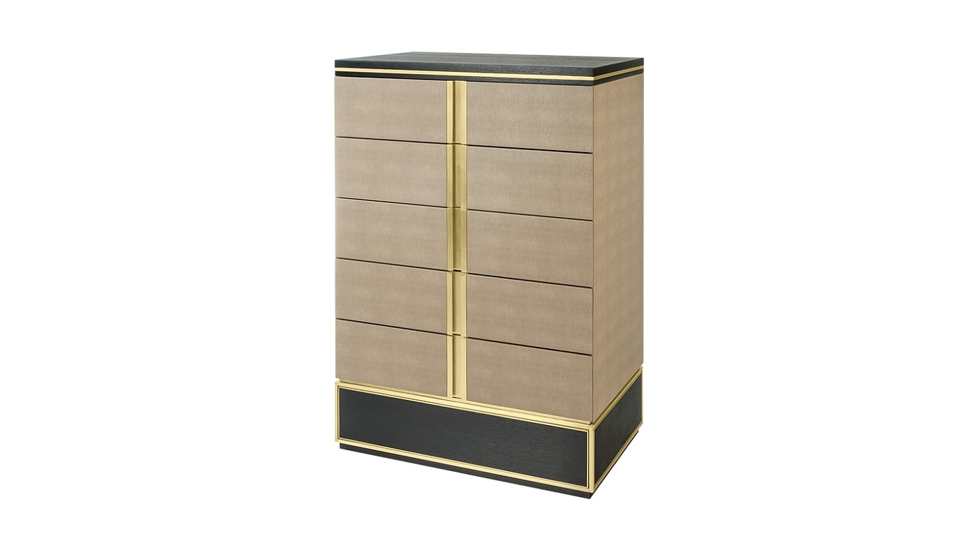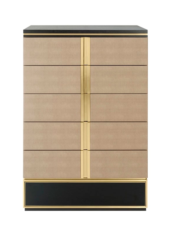 Практичный и аккуратный узкий шкафчик AVIGNON tallboy - это стильное решение для хранения вещей. Изготовленные из деревянного шпона, шесть просторных выдвижных ящиков с замшевой подкладкой обтянуты кожей и дополнены аксессуарами из матовой латуни.