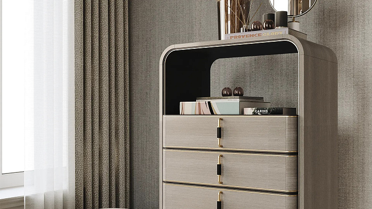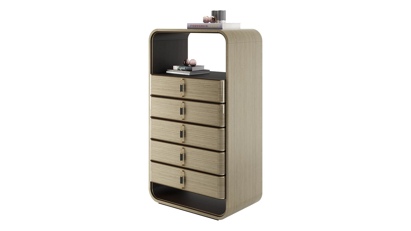 Тумба COLMAR tallboy с пятью выдвижными ящиками заменяет жесткие края мягкими изгибами и сочетает в себе хорошие организационные возможности с небольшими габаритами, что делает ее идеальным вариантом для хранения вещей, когда требуется большая площадь помещения.