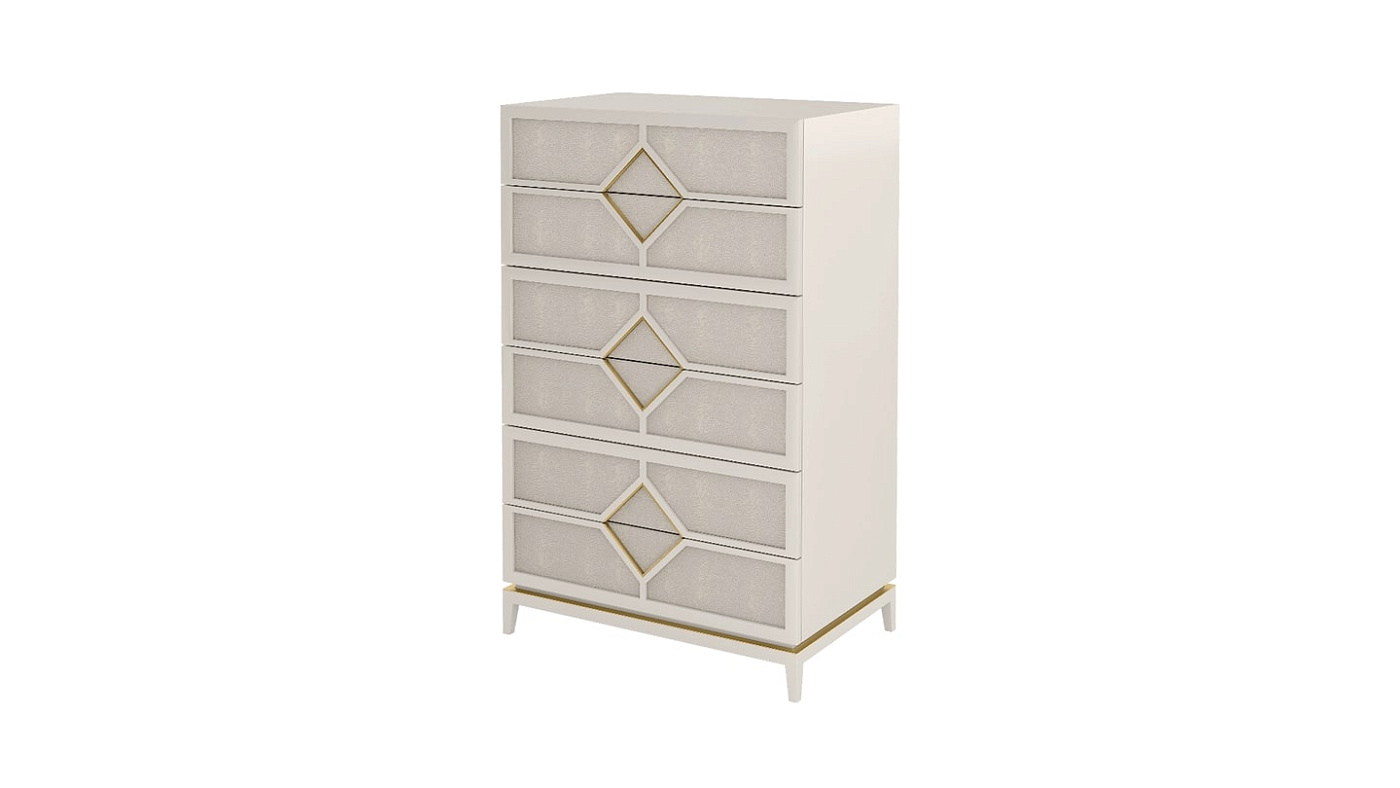 Тумба DIAMOND tallboy из лакированного дерева отличается лаконичным дизайном, фасадами выдвижных ящиков в стиле резьбы, окантованными латунью и отделанными кожей, а шесть выдвижных ящиков с замшевой подкладкой облегчают организацию.