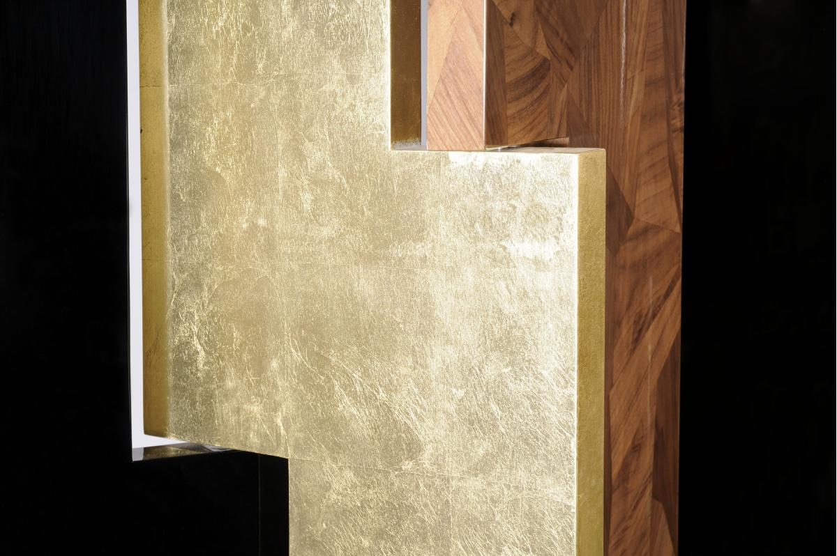 Складная ширма Avenue от компании Boca do Lobo настолько элегантна, что может быть установлена практически в любой комнате. Avenue – это яркий предмет интерьера, который привлекает внимание и создает хорошее настроение. Дизайн и технические характеристики этой ширмы позволяют ей не только выполнять функции разделителя пространства, но и выступать в качестве самостоятельного арт-объекта. Avenue, в отличие от ширмы Jay, состоит из шести панелей и имеет более сложную отделку: сусальное золото или серебро, глянцевый лак, мозаика из шпона ореха и черного дерева.