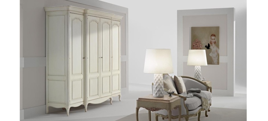 Шкаф из коллекции Dalila — мечта каждого, кто ощущает трепет перед «французским стилем». Модель изготовлена из массива вишни, но для отделки дизайнеры AM Classic выбрали самый галльский оттенок из всех возможных — романтичный, нежный белый антик. Дверцы шкафа украшает тончайшая резьба. Здесь совершенны каждый изгиб и каждая линия.