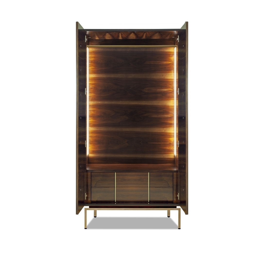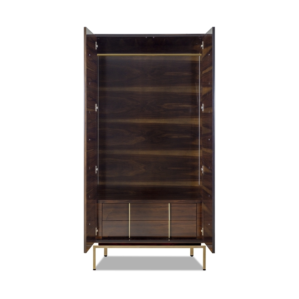 Украсьте свою комнату двухдверным шкафом Coral. Этот красивый предмет мебели обеспечивает идеальное хранение вещей и придает элегантный вид любому пространств. Две дверцы с плавным закрыванием. Два внутренних выдвижных ящика с плавным закрыванием. Светодиодная подсветка внутри. Одна подвесная полка. Основание из нержавеющей стали.