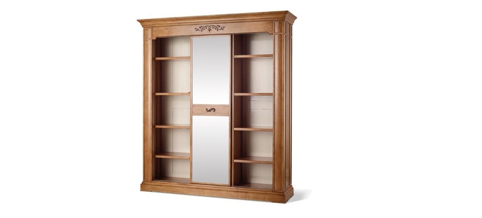 Состаренная отделка выгодно подчёркивает рафинированное дизайнерское решение. Модель найдёт место в вашей гостиной или столовой, и вы ни разу не пожалеет о своём выборе: вместительный классический шкаф станет надёжным хранилищем для любимого сервиза, фотографий прадедушки и коллекционных изданий поэтов серебряного века.