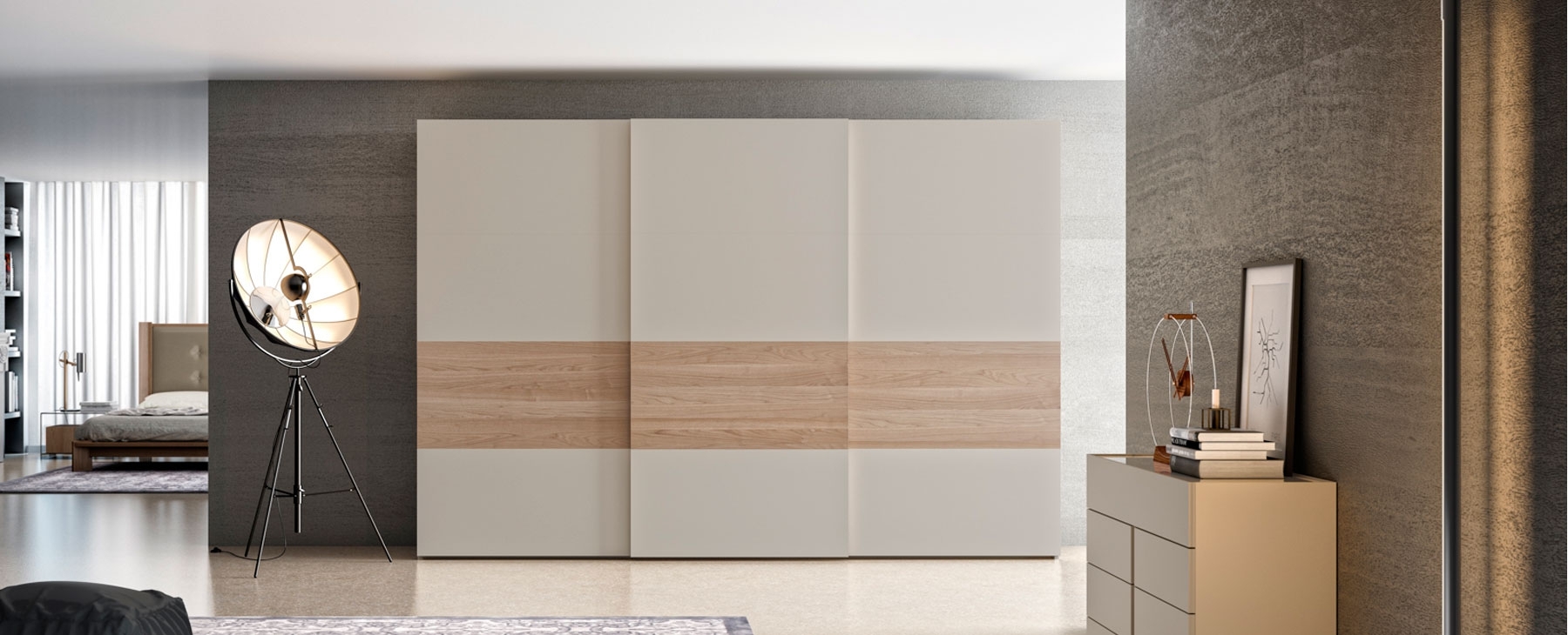 Шкаф-купе EASY имеет различные формы, которые создают разнообразие цветов и текстур, придавая дизайну естественный вид. Вневременной дизайн для любой спальни. Отделка модели на изображении: Лаковый лист Piedra На последних двух изображениях показаны различные интерьеры гардероба.