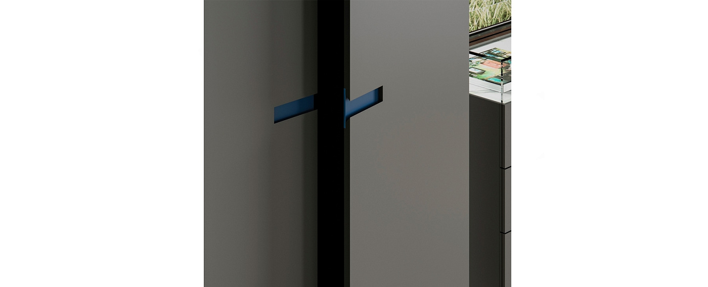 Длинная и широкая рама, в которую можно вставить панель. Это то, что определяется как "прорезь", с помощью которой мы можем получить тонкую и необходимую деталь для открывания этой двери. С помощью EFE вы можете комбинировать различные цвета двери и ручки. Отделка модели на изображении: На последних двух изображениях показаны различные интерьеры гардероба.