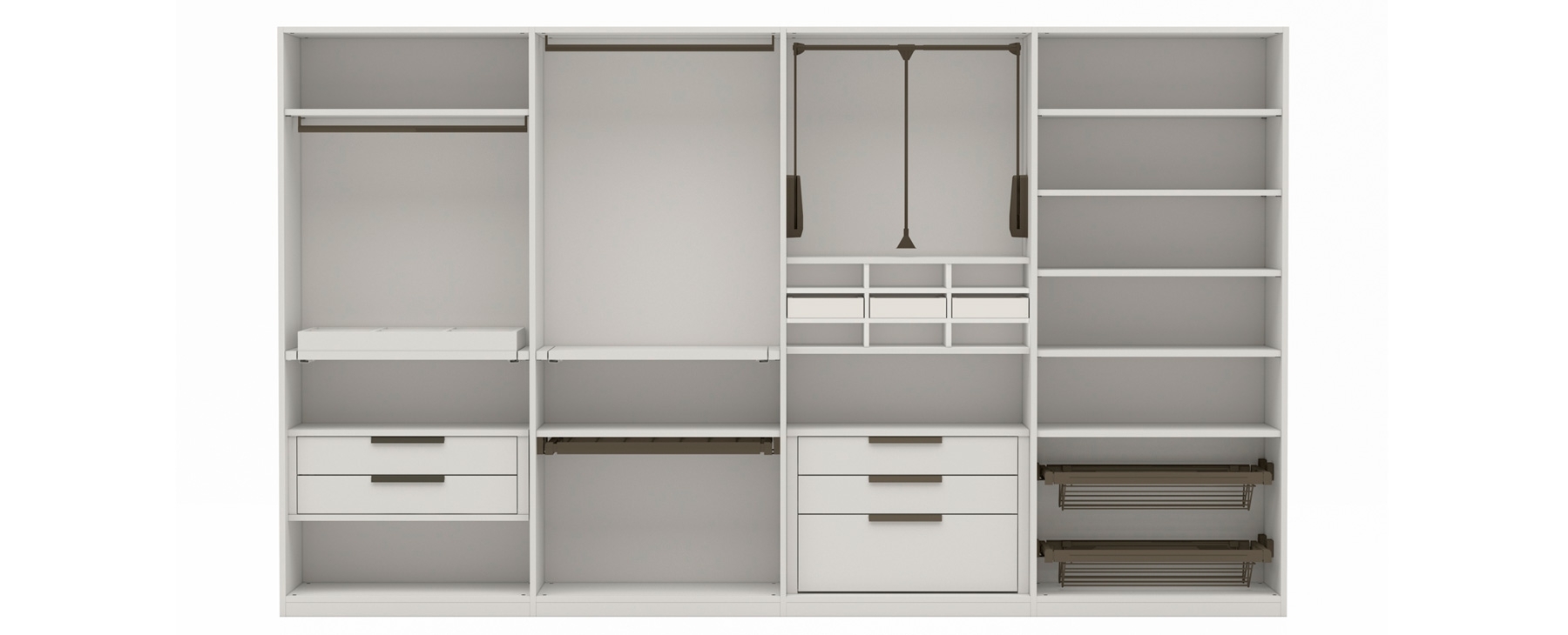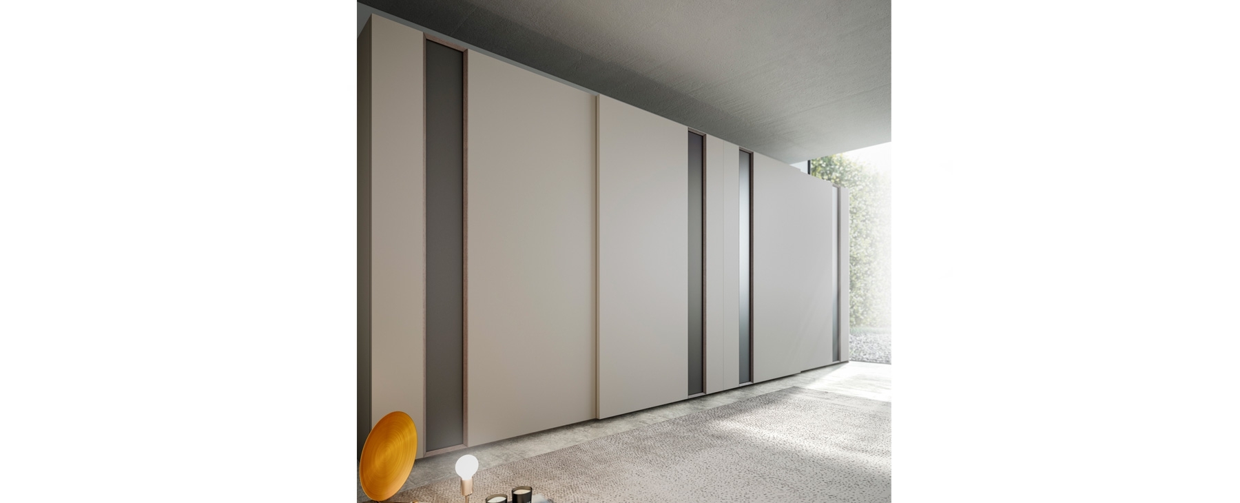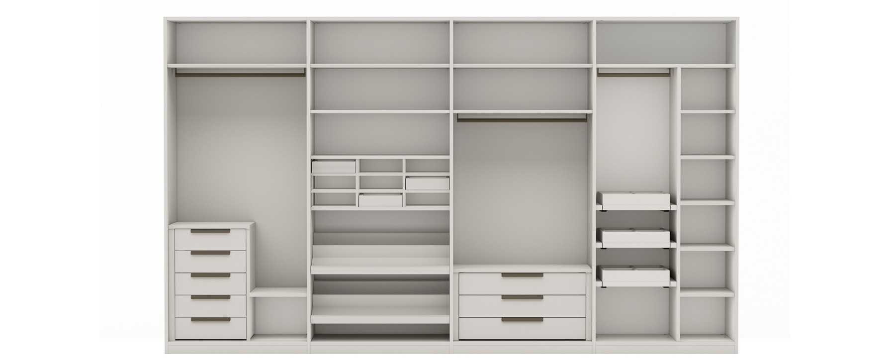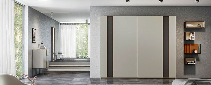 Простота и кропотливая работа объединены для создания дверей шкафа-купе, которая приглашает вас заглянуть внутрь, как если бы это было окно, чтобы оценить различные оттенки и текстуры, которыми она обладает. Отделка модели на изображении: Лист лака Piedra Лак какао На последних двух изображениях показаны различные интерьеры гардероба.