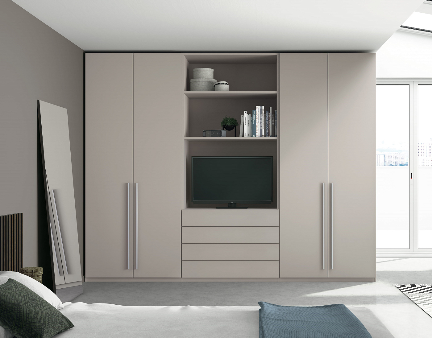Сбалансированный и функциональный, гардероб Lisa имеет дополнительный выдвижной ящик и набор открытых отсеков, специально предназначенных для размещения электронных гаджетов и организации часто используемых элементов. По-настоящему практичная система с элегантными и удобными вертикальными ручками для этой вневременной концепции, которую можно комбинировать с любым типом кровати.