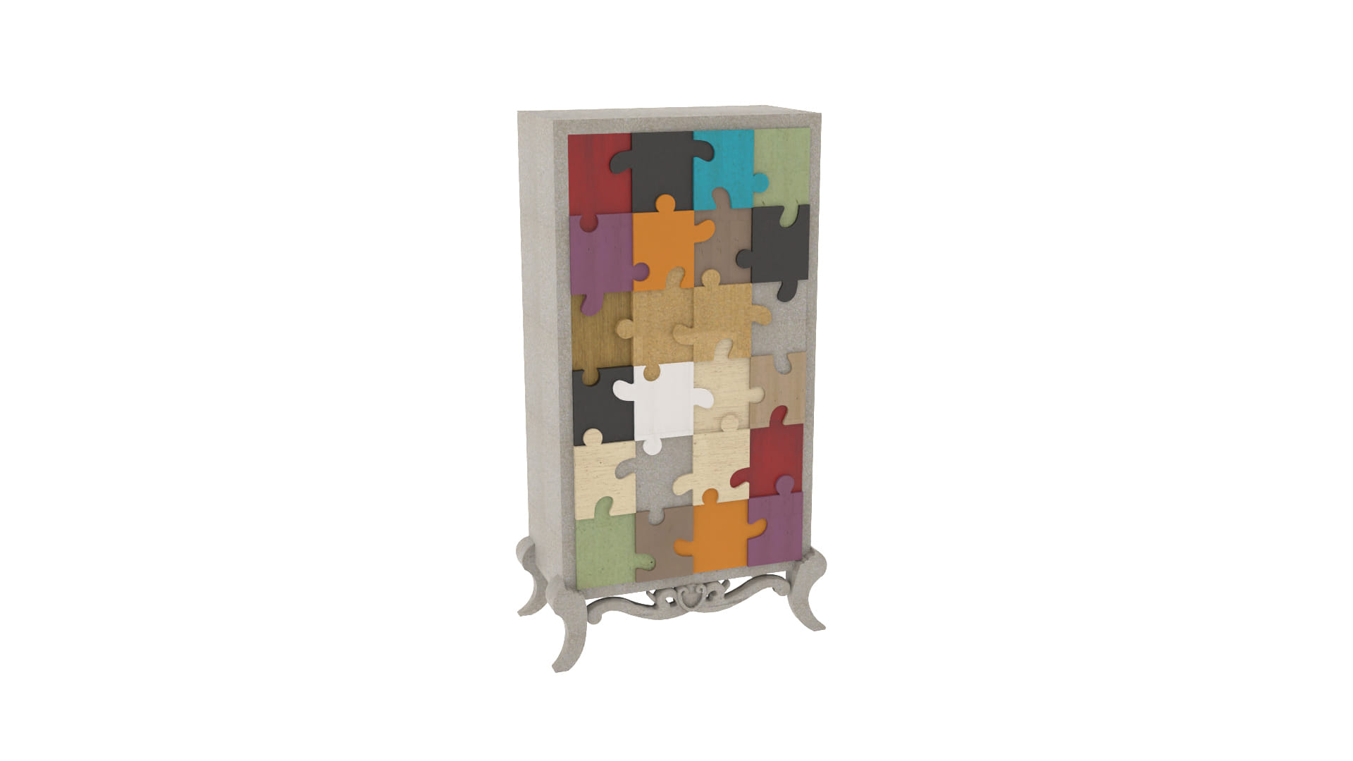 Шкаф Puzzle от фабрики Lola Glamour (Испания) изготовлен вручную из массива португальской вишни. Фасад комода декорирован разноцветными деревянными элементами, выполненными в виде фрагментов паззла – классической головоломки, целью которой является создание единой картинки из отдельных частей. Ножки шкафа выполнены в неоклассическом стиле. Этот оригинальный шкаф представляет собой нечто большее, чем просто предмет мебели для гостиной – это настоящий арт-объект. С одинаковым успехом его можно разместить в любой комнате, в том числе и в детской. По желанию заказчика цвет и отделка шкафа Puzzle могут быть изменены. В дополнение к шкафу Puzzle на нашем сайте Вы также можете найти комод Puzzle, выполненный в том же стиле.