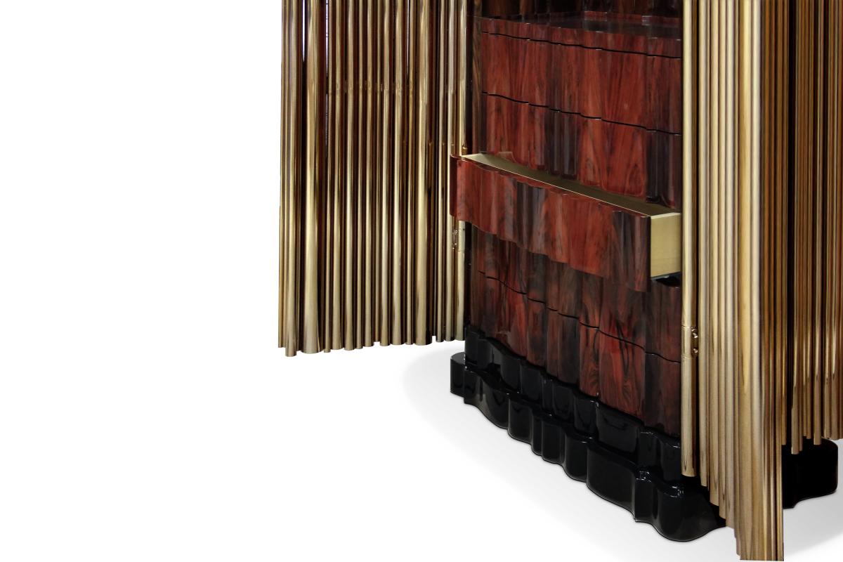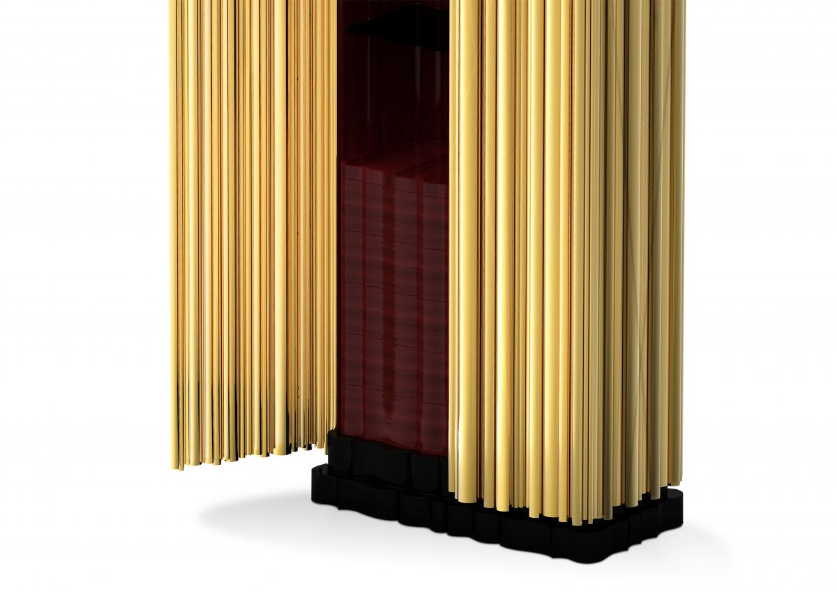 Шкаф Symphony от бренда Boca do Lobo (Португалия) является одним из самых ярких и изысканных предметов в коллекции Limited Edition. Дверцы и корпус шкафа сделанны из 95 позолоченных медных труб. В любом интерьере Symphony вызовет причудливый резонанс, основанный на смешении стилей. Внутри этот шкаф отделан ценными породами дерева, оборудован двумя стеклянными полками и имеет несколько ящиков, обитых бархатом.