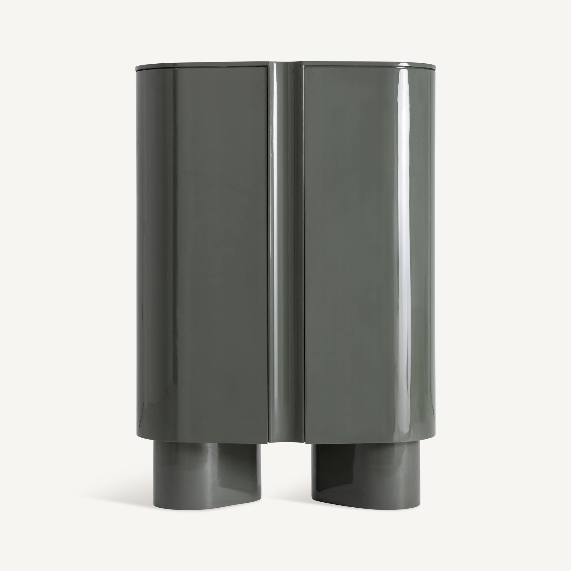 Современный шкаф Saxby, изготовлен из зеленого МДФ с глянцевой отделкой. Разборный. Ширина: 110 см, Глубина: 50 см, Высота: 160 см