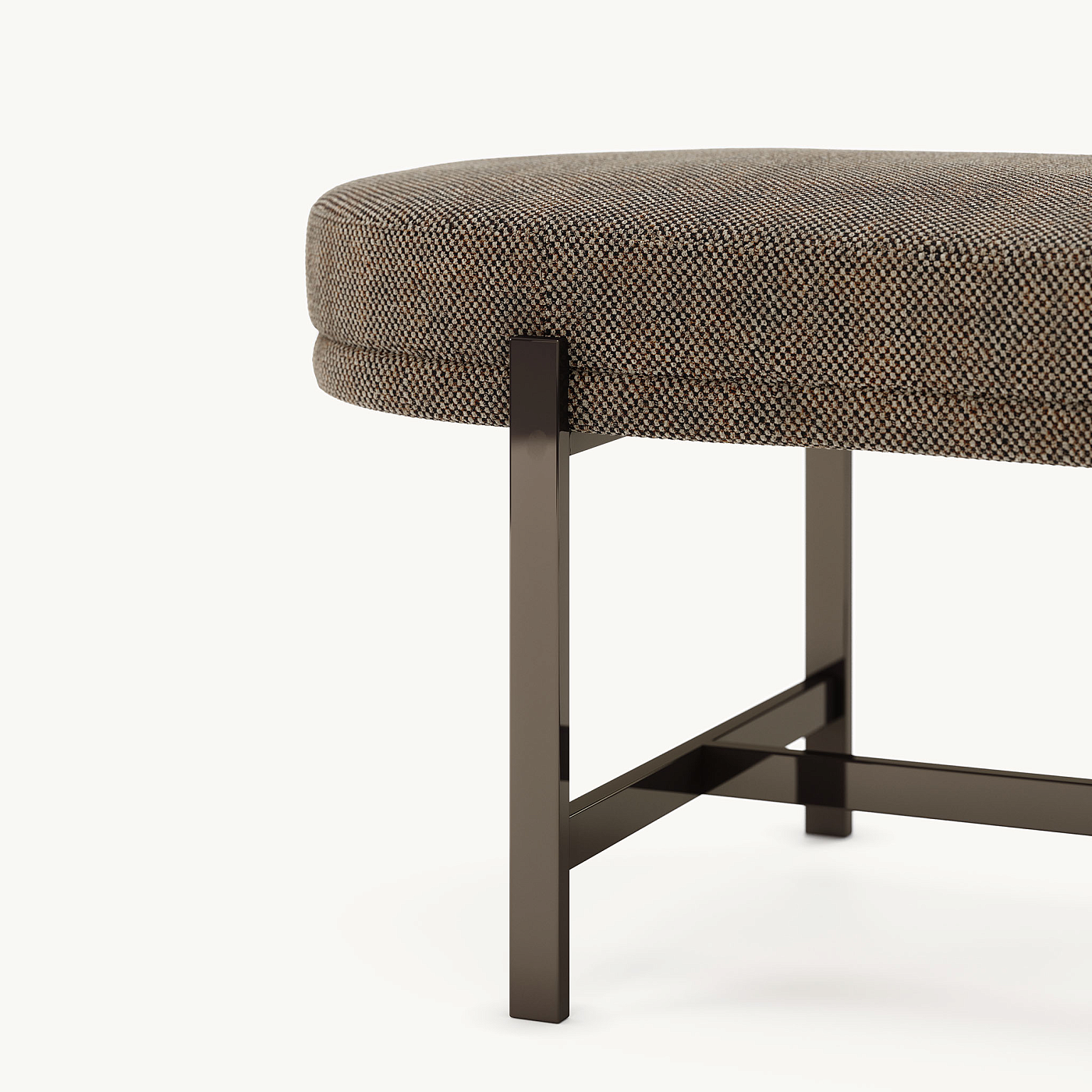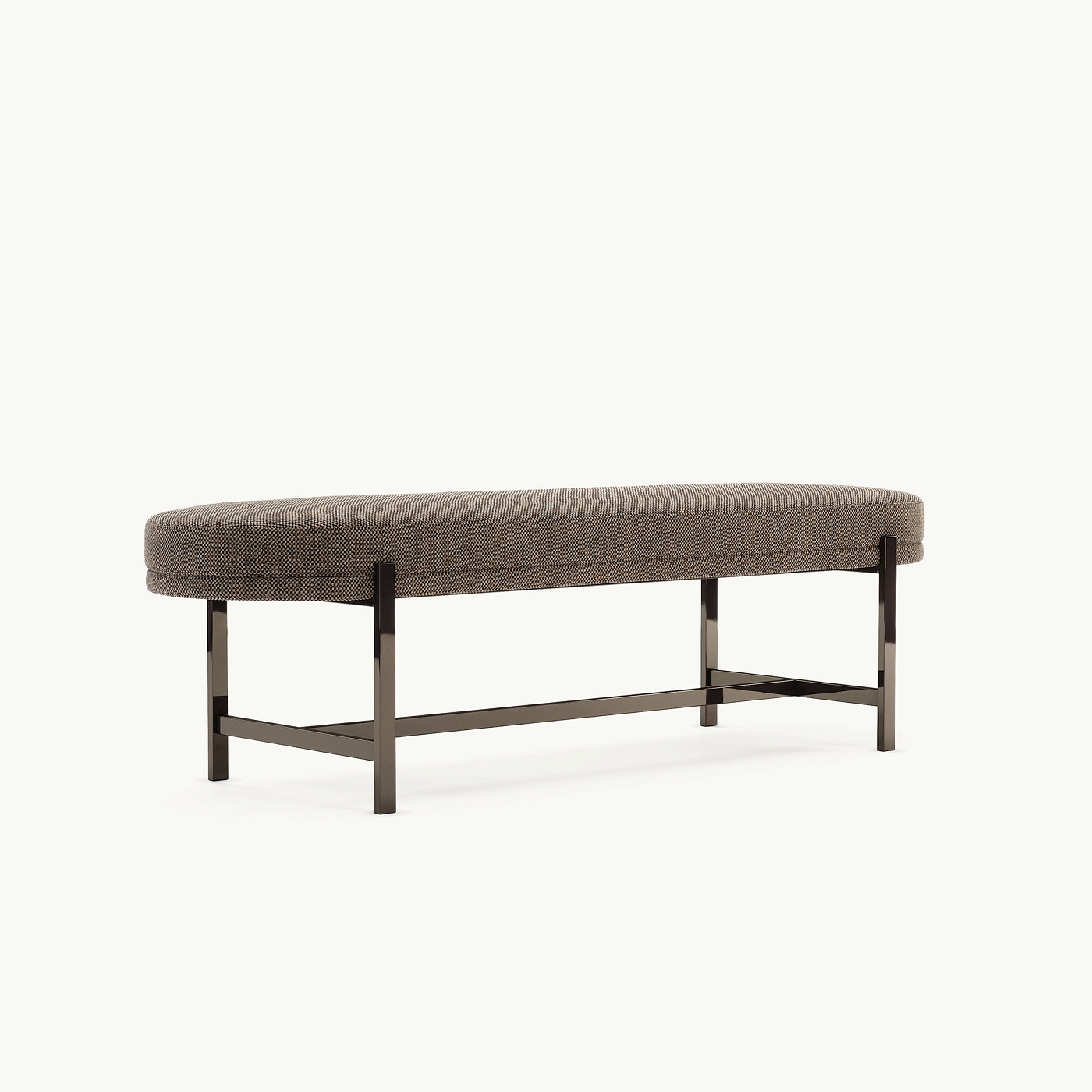 Colbert — сдержанная и элегантная скамья, идеально подходящая для современной обстановки. Сиденье полностью обито тканью и имеет изящную одинарную и двойную строчку, придающую изделию роскошь. Colbert также характеризуется сложной металлической Т-образной основой с четырьмя металлическими ножками. Овальная вытянутая форма сиденья красиво контрастирует с исходными материалами и линиями конструкции. Этот изысканный дополнительный предмет прекрасно сочетается с любой кроватью, сочетая в себе функциональность и стиль.
