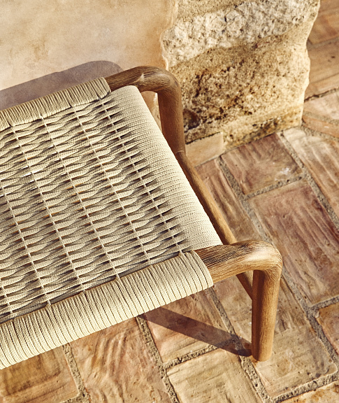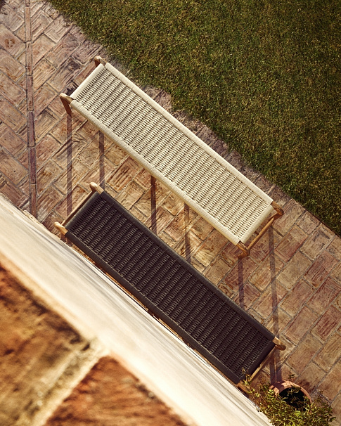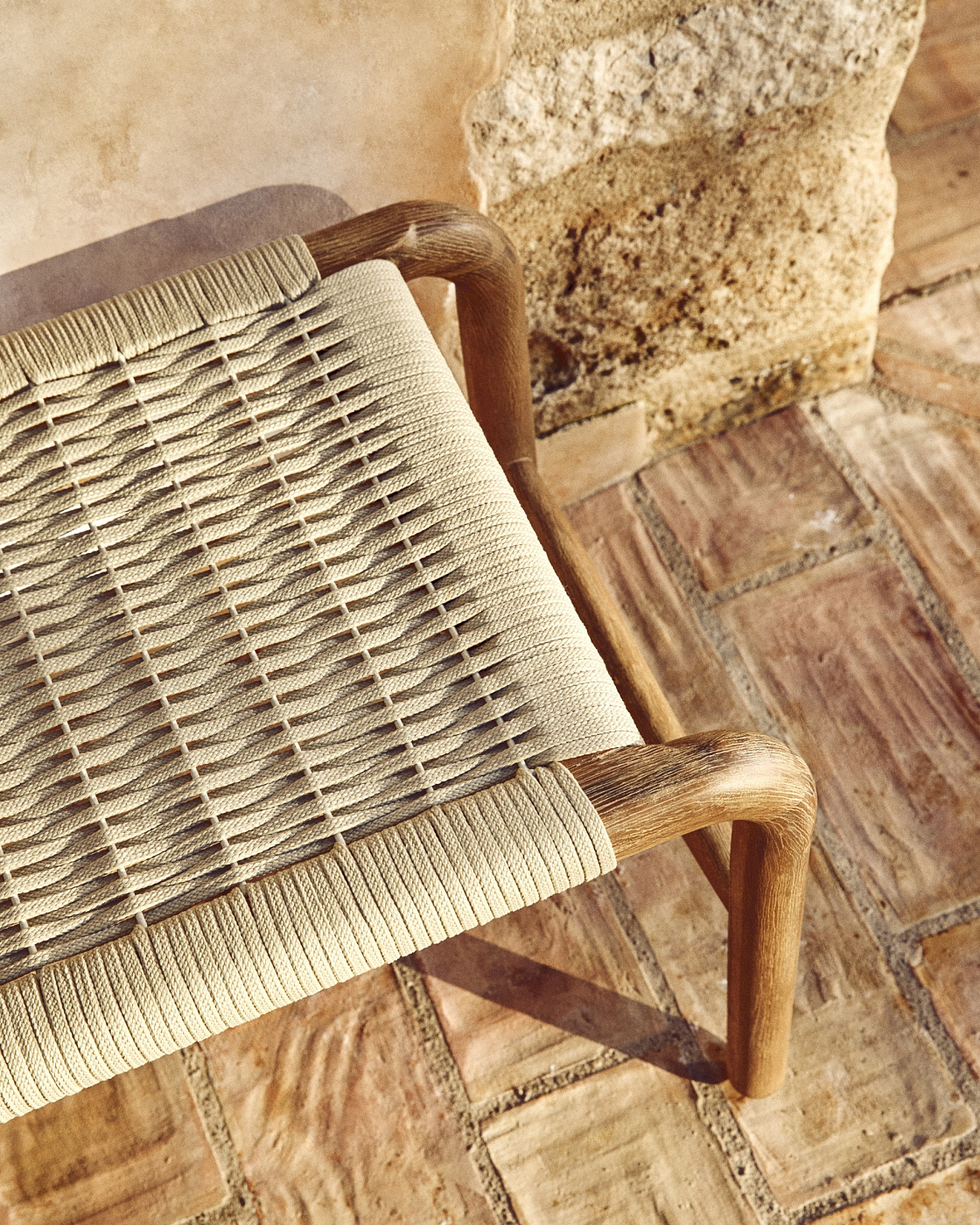 Скамейка Alipa из массива акации и веревки цвета экрю