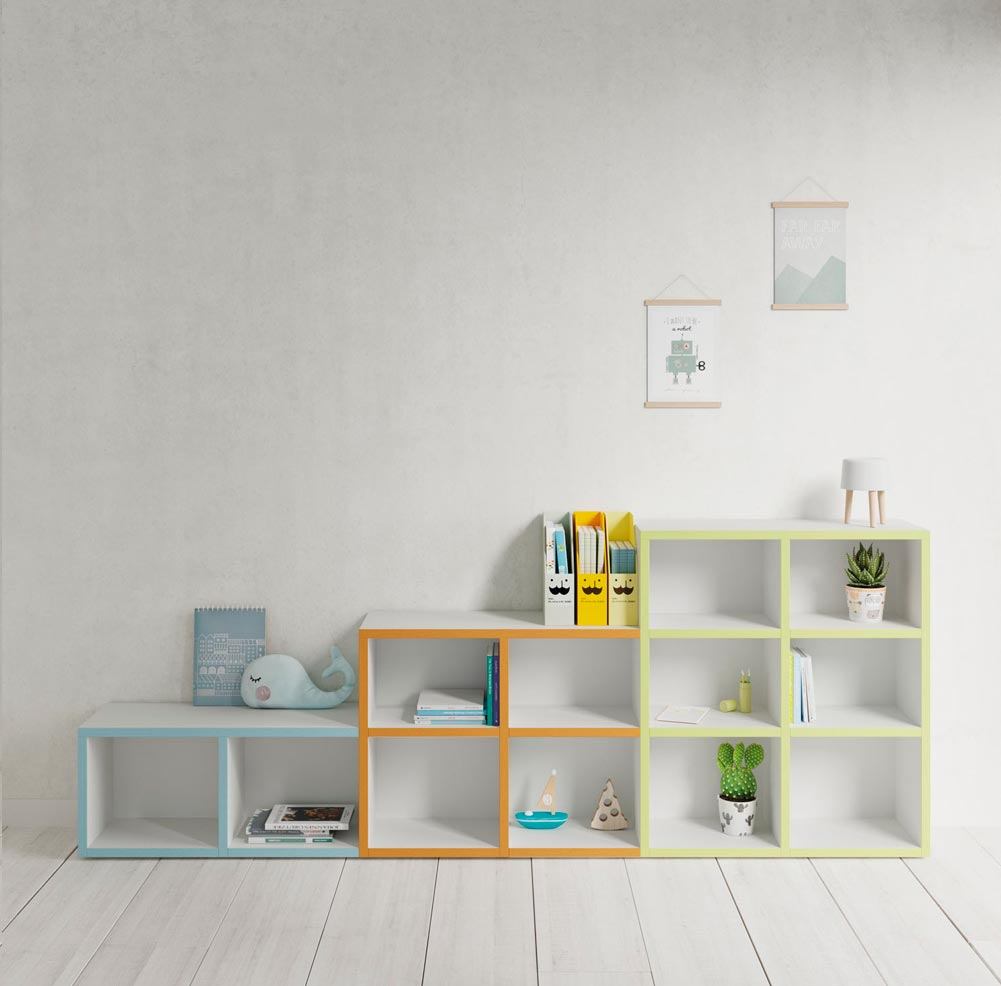 Комбинация различных открытых модулей Airbox с разноцветными фасадами на трех разных высотах.