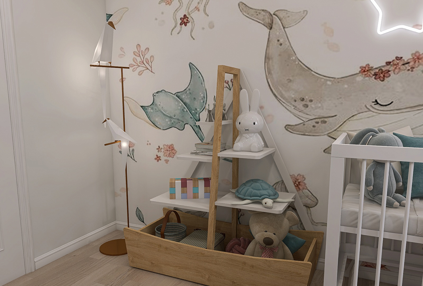Легкая установка: Стеллаж предназначен для простой и быстрой сборки, что позволяет вам без труда перенести морскую атмосферу в комнату вашего ребенка.