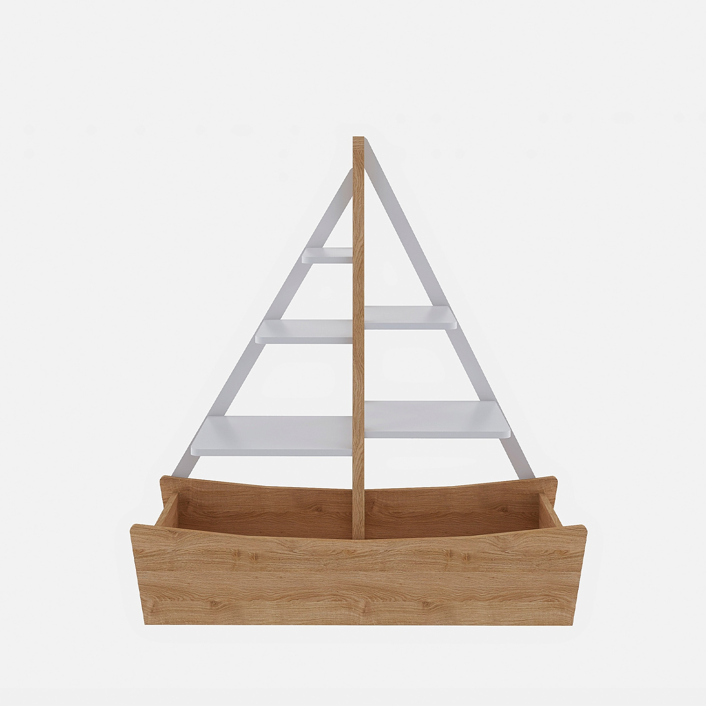 Морской Дизайн: стеллаж выполнен в виде кораблика, что делает его отличным дополнением к интерьеру детской комнаты.