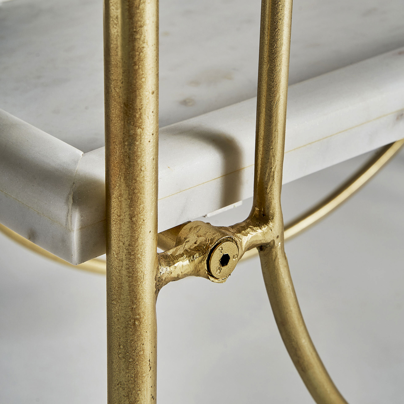 Книжный шкаф DIEUZE, цвет золота, стиль арт-деко. Изготовлен из железа в сочетании с мрамором. Съемное изделие. Ширина: 79 см, Глубина: 32 см, Высота: 181 см.