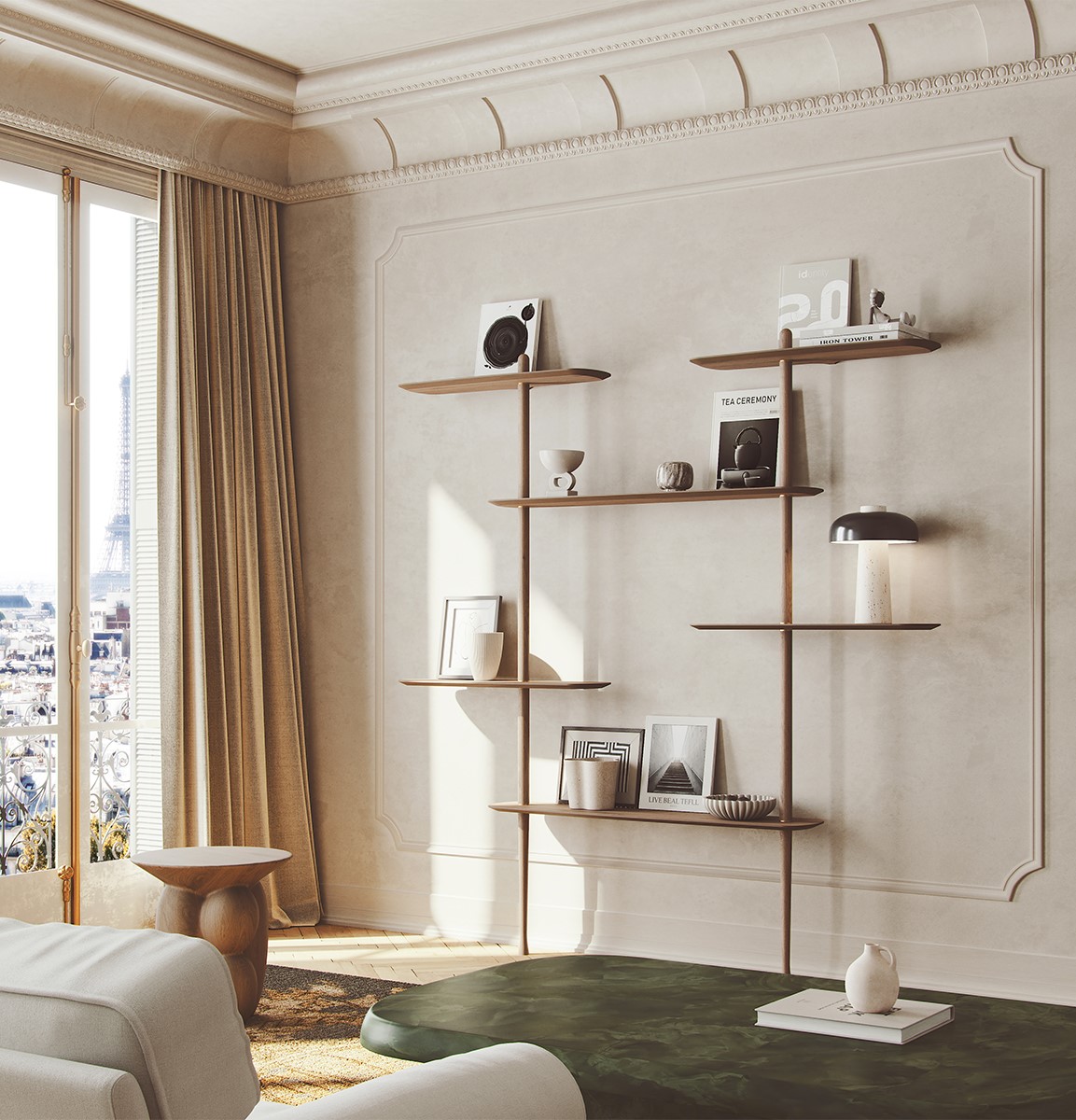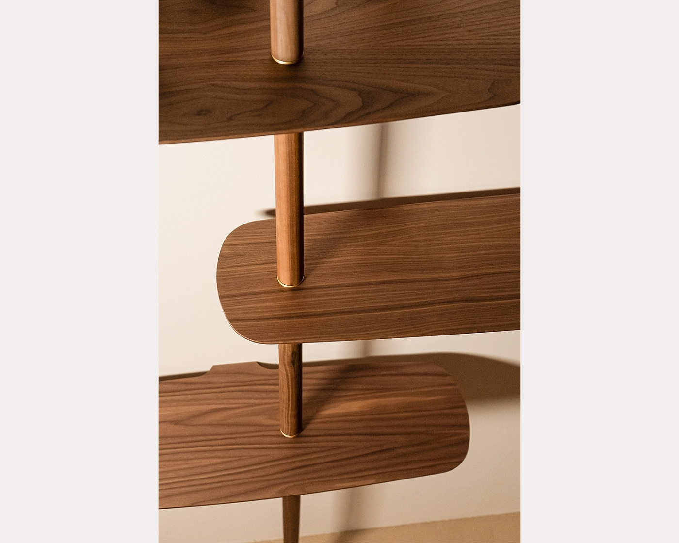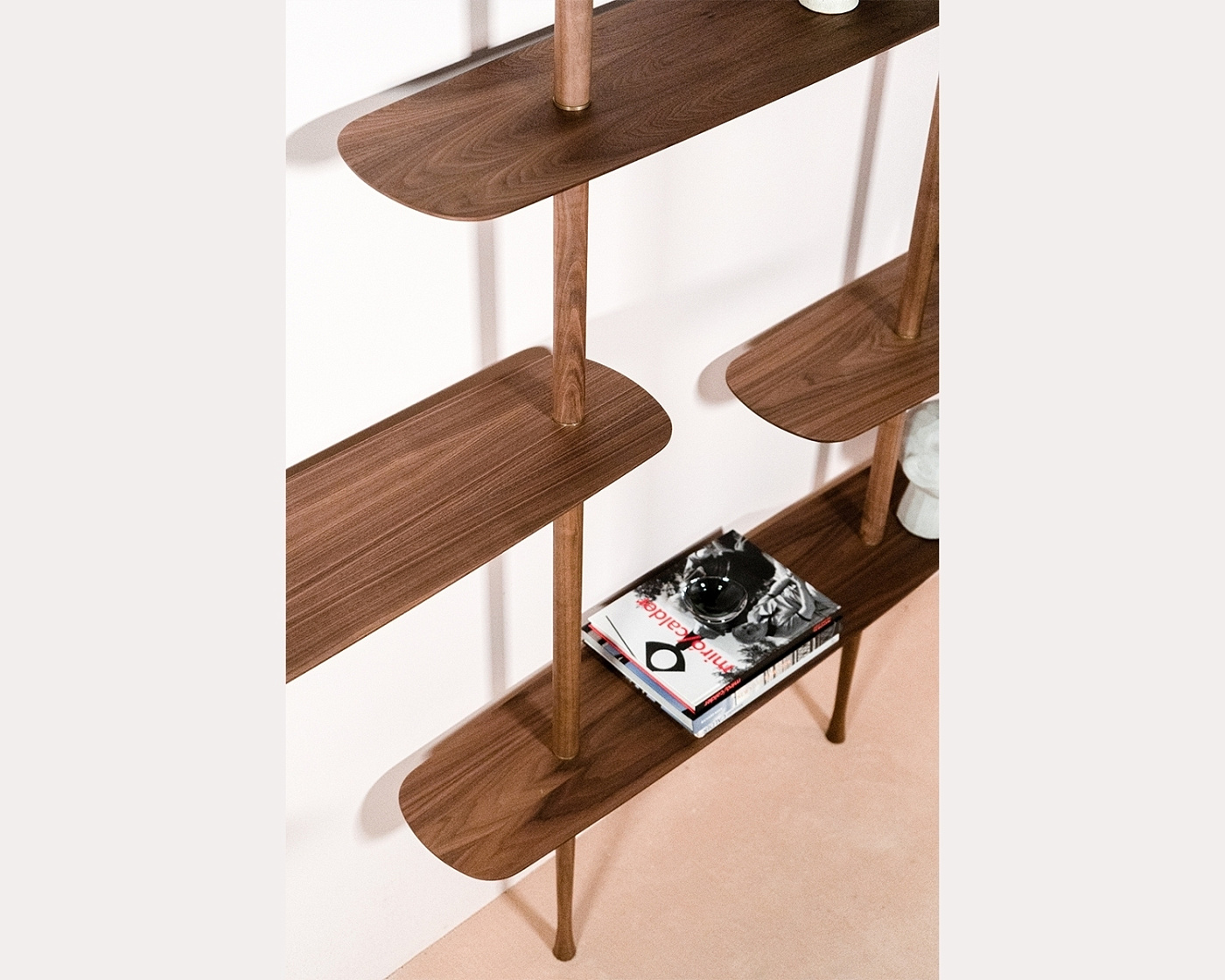 Система полок Axis выделяется своей простотой и скульптурным внешним видом. Безупречный стеллаж, изготовленный из секций массива ореха, и изящные полки, отделанные натуральным шпоном ореха.