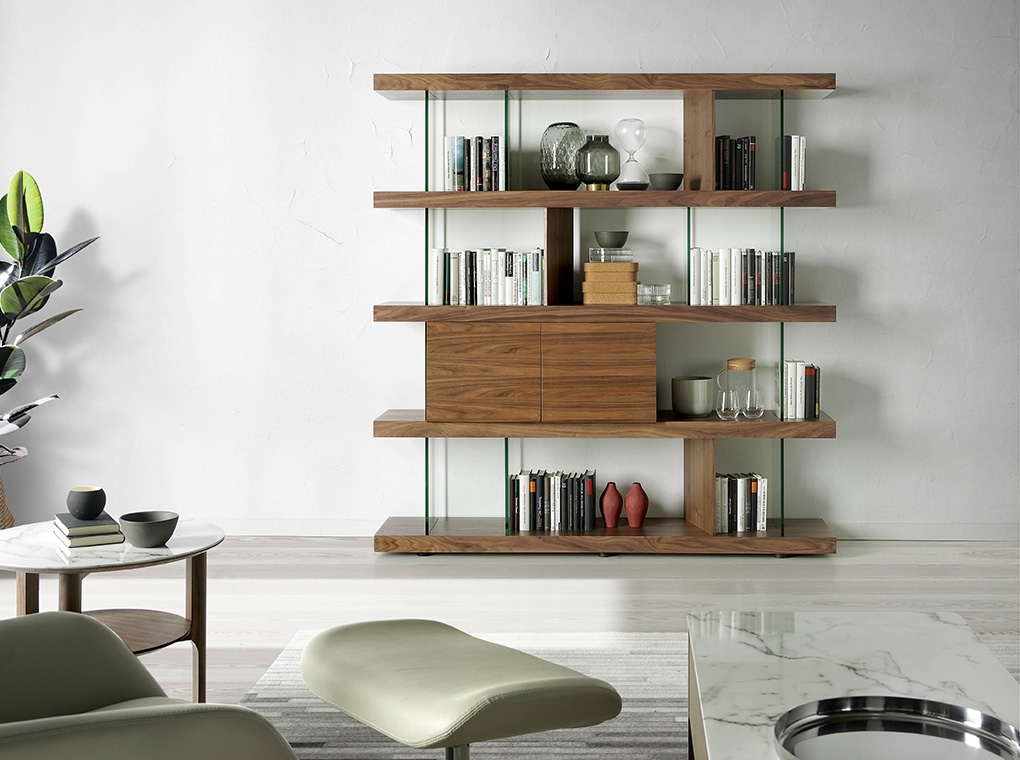 Стеллаж CP1711 /3072 ореховый с полками из стекла
