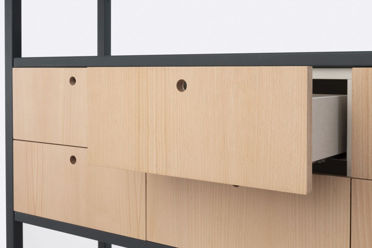 Модульная система разной высоты, цвета и размеров. Программа, подходящая для больших помещений или небольших помещений. Создайте свой собственный стеллаж, 6 разной высоты, 2 ширины и 2 глубины. Чистая функциональность в простой системе.
