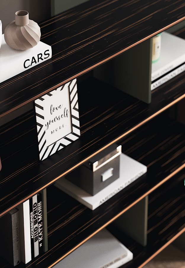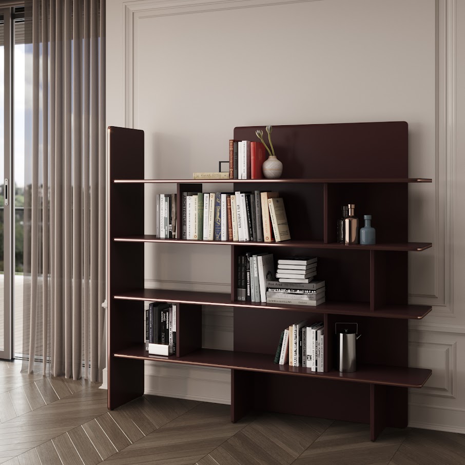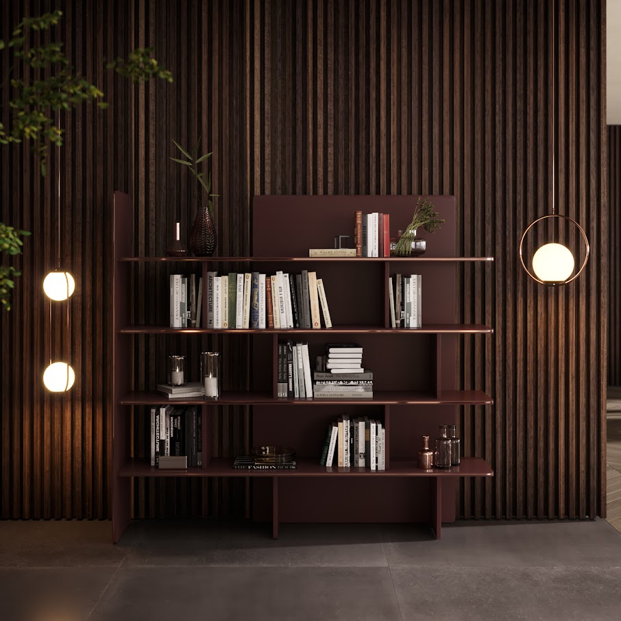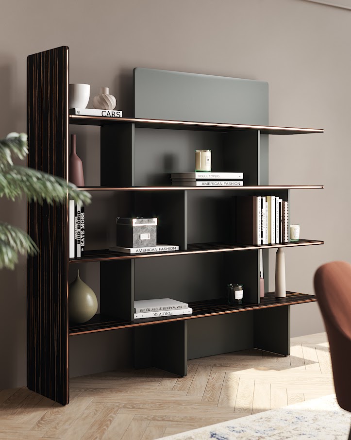 Элегантная форма и плавные линии книжного шкафа Havasu следуют эстетическому языку райского водопада, который его характеризует. Сочетание деревянных изогнутых полок с инкрустированными металлическими деталями делает этот современный книжный шкаф подходящим предметом для интеграции в любую современную атмосферу.