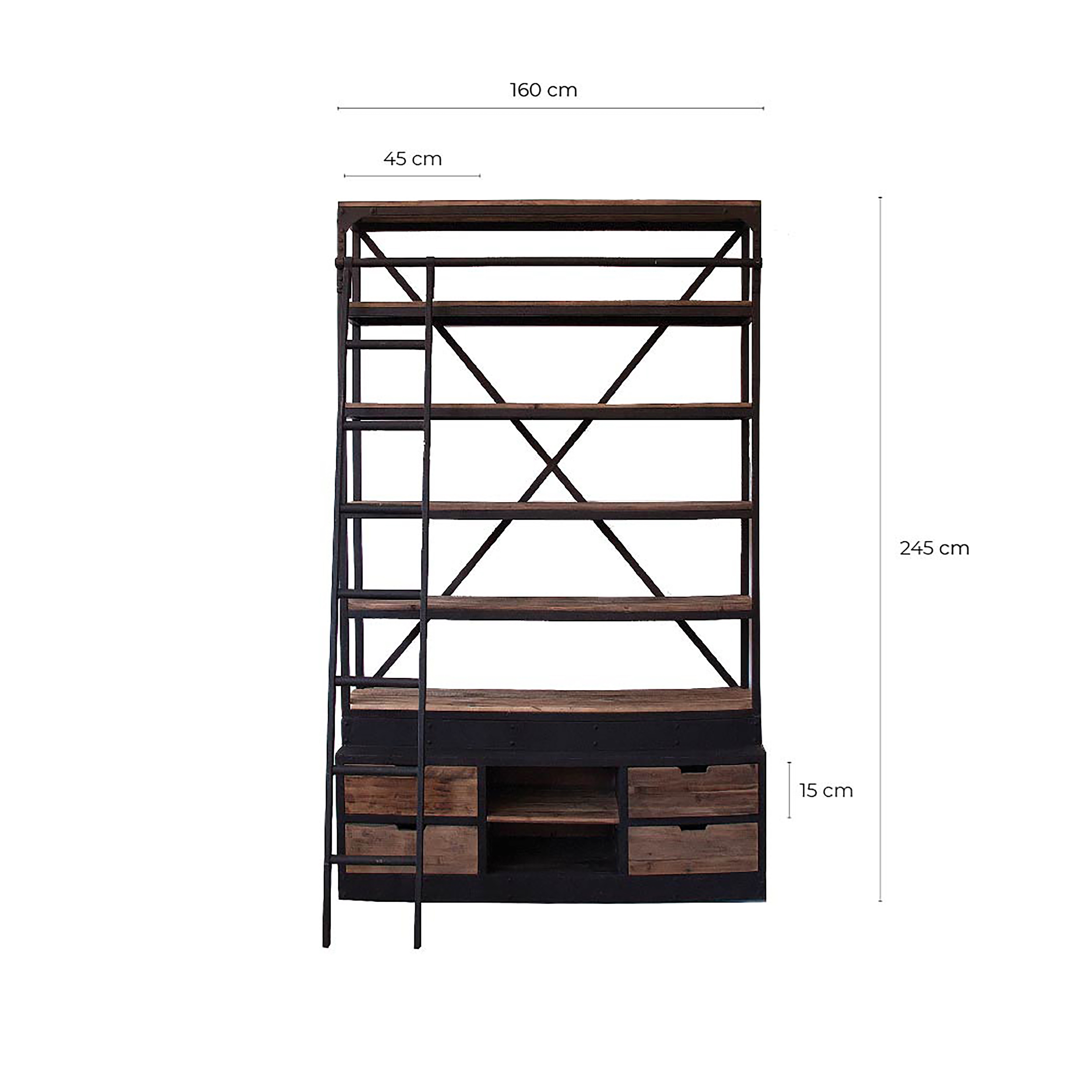 Преобразите свое пространство с помощью книжного шкафа Ivalo от VICAL home. Этот предмет мебели размером 160x45x245 см сочетает в себе переработанную сосновую древесину и железо в черных и натуральных тонах, создавая индустриальную эстетику, которая выделяется в любом помещении. Благодаря входящей в комплект лестнице, доступ к верхним полкам этого индустриального книжного шкафа очень удобен. Ivalo — идеальный вариант для тех, кто ценит дизайн, экологичность и функциональность. Ширина: 160 см, Глубина: 45 см, Высота: 245 см
