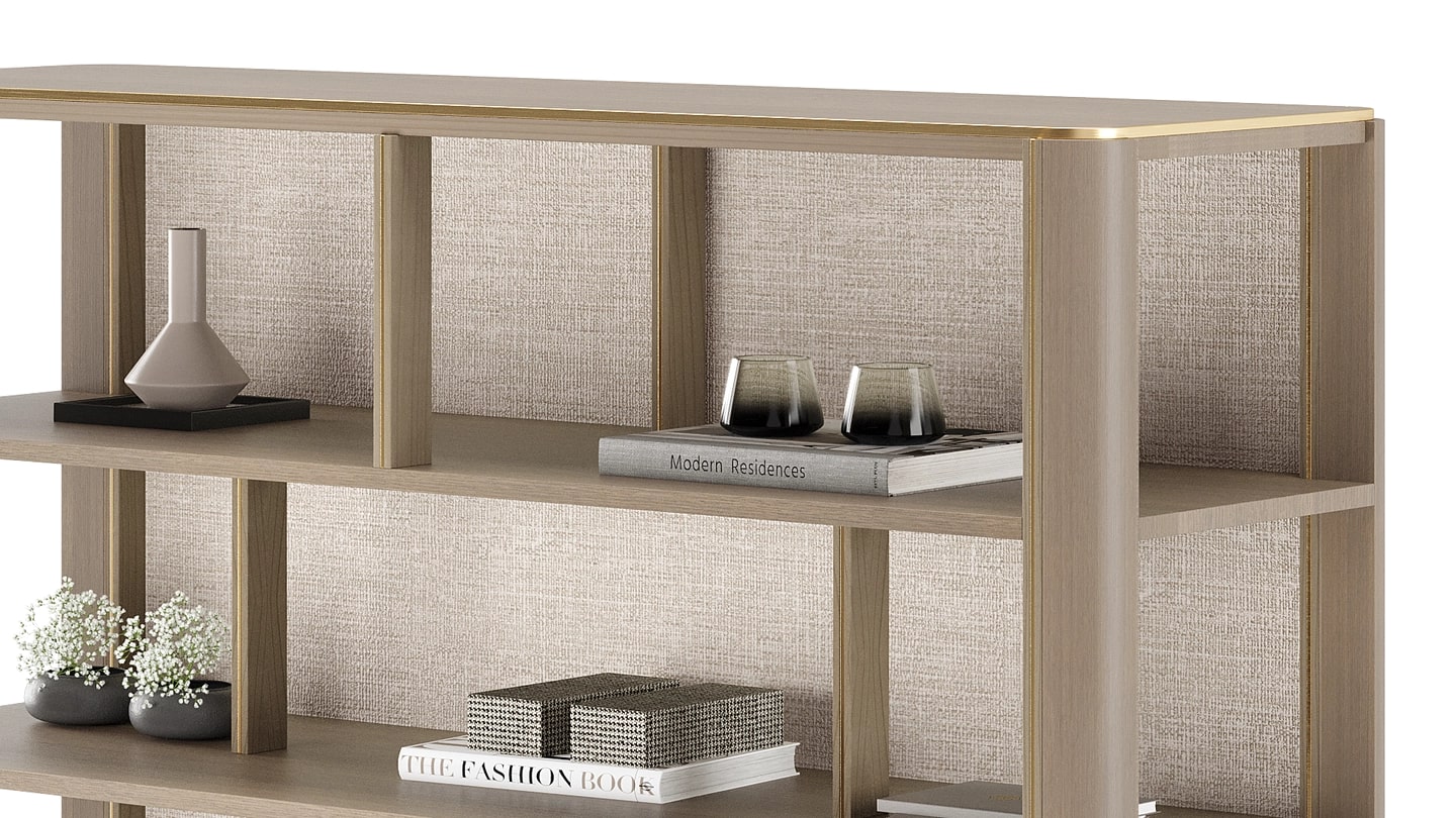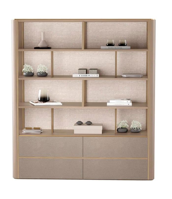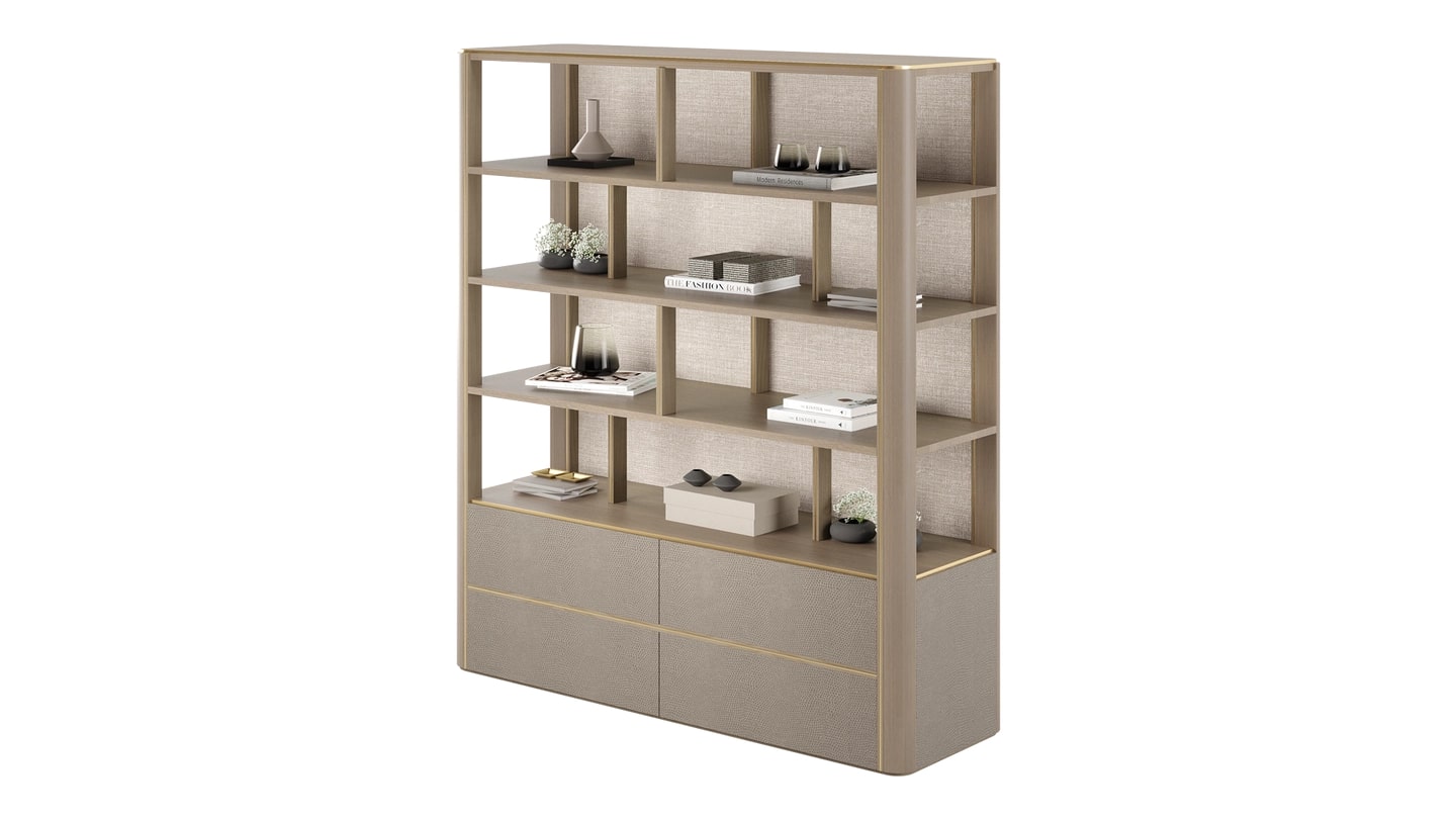 Этот совершенно новый книжный шкаф, являющийся последним дополнением к нашему семейству мебели KENT, пользующемуся наибольшими продажами, продолжает эстетику коллекции с чистыми линиями, открытыми деревянными полками и выдвижными ящиками без ручек, отделанными текстурированной искусственной кожей.