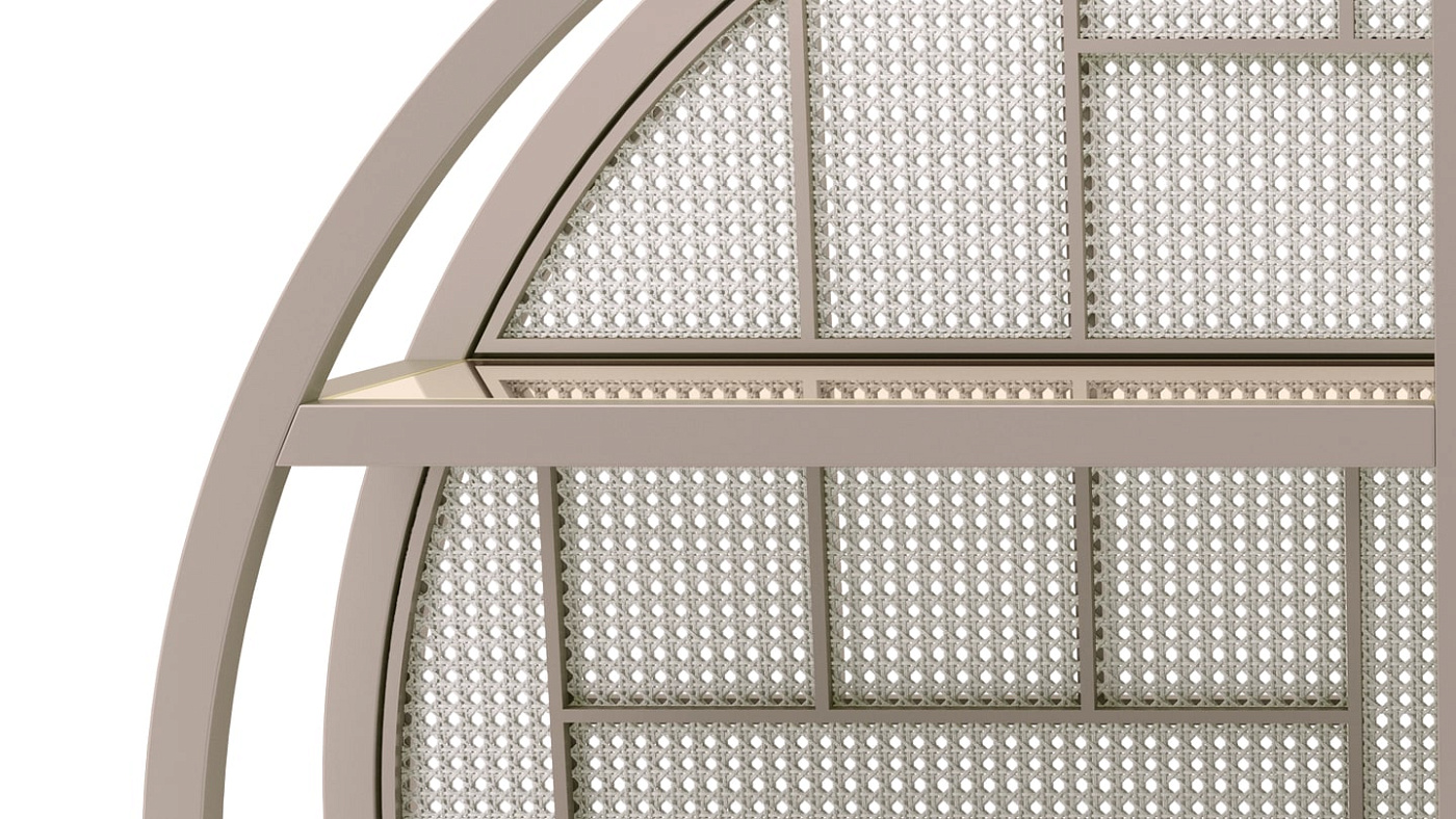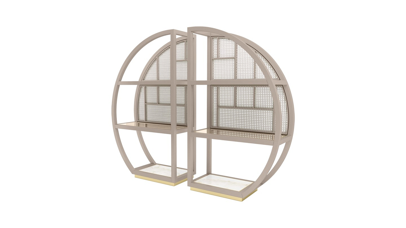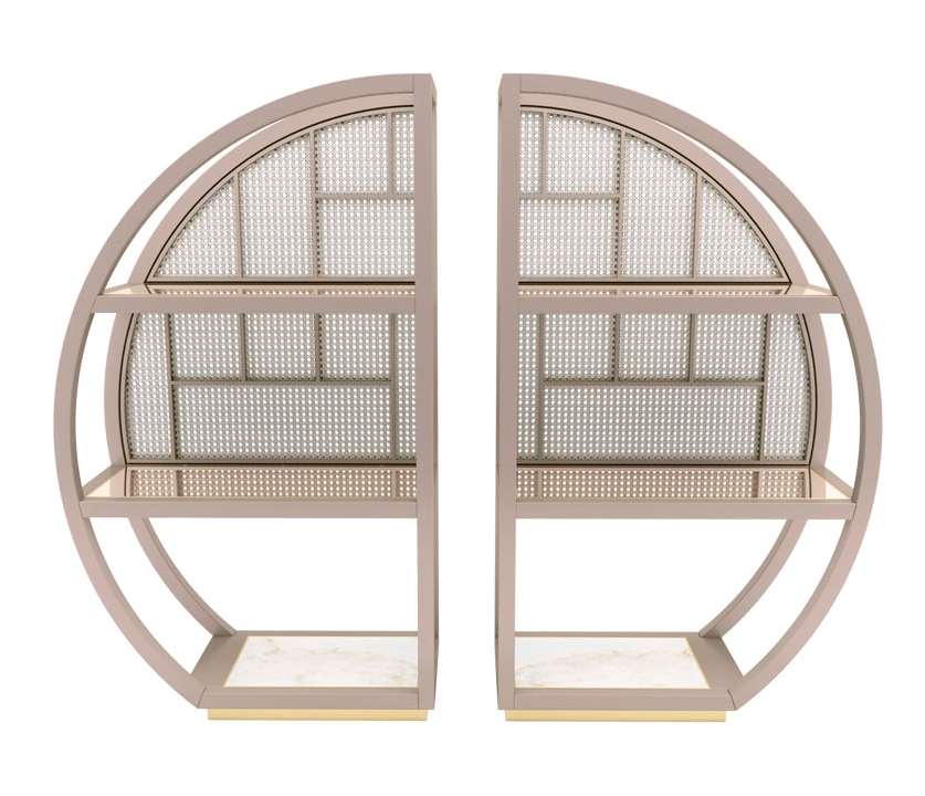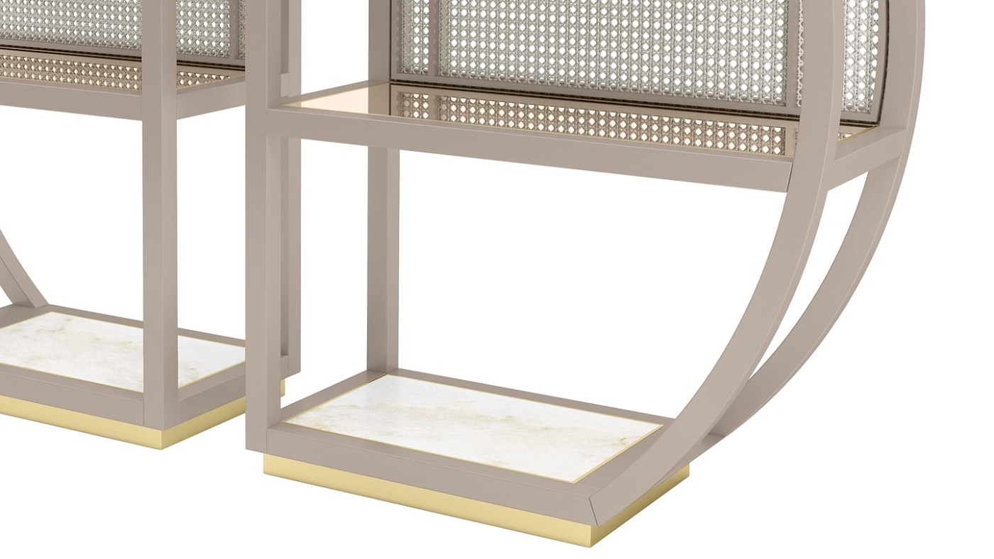 Уменьшенная версия нашего книжного шкафа NARA в восточном стиле, полки NARA III также инкрустированы бронзовым зеркалом, в котором мягко отражается любой предмет, расположенный сверху. Изготовленные из лакированного дерева и ротанга, его две идеально симметричные половинки утяжелены каменным основанием и могут быть соединены как единое целое или расположены порознь.