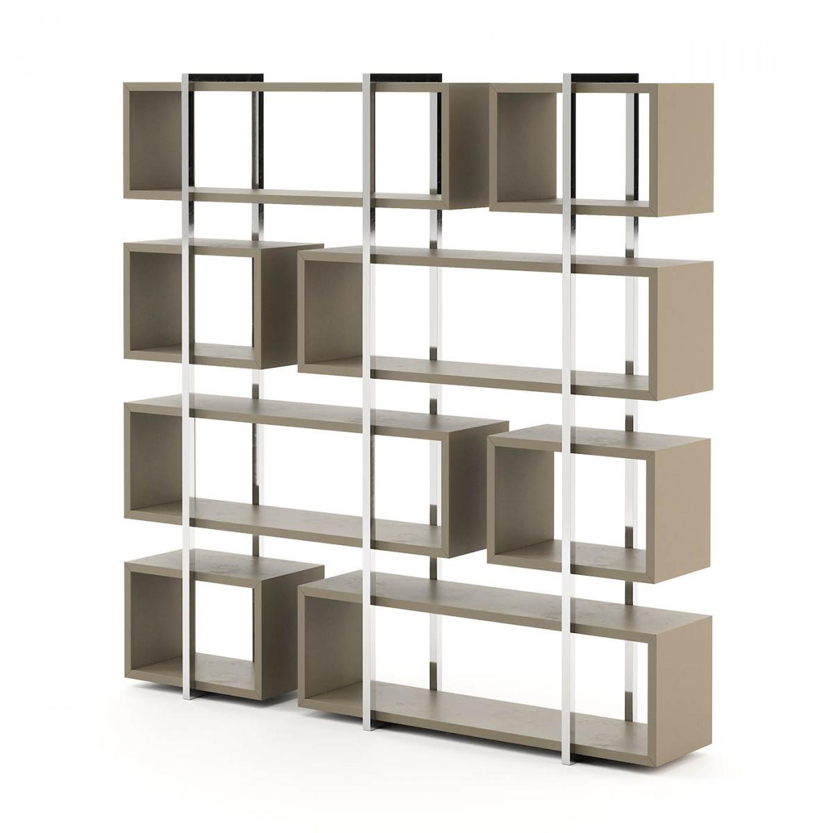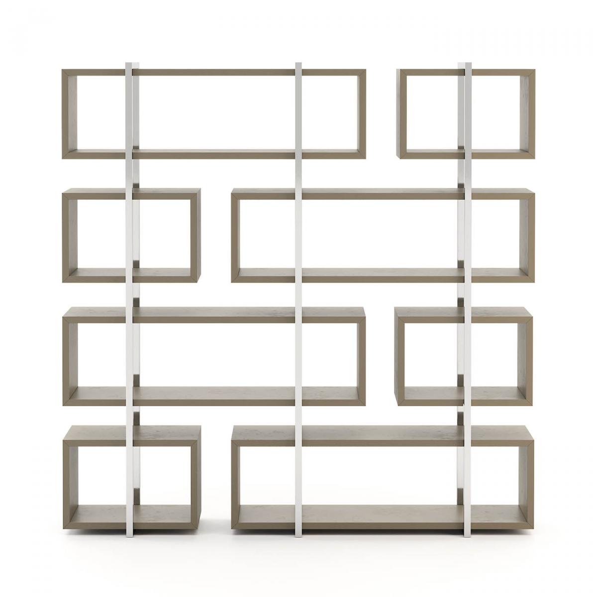 Praga-это современная полка середины века . Его структура представляет собой модульную форму и детали из нержавеющей стали. Использование различных форм играет плавный контраст с металлическими и деревянными материалами.