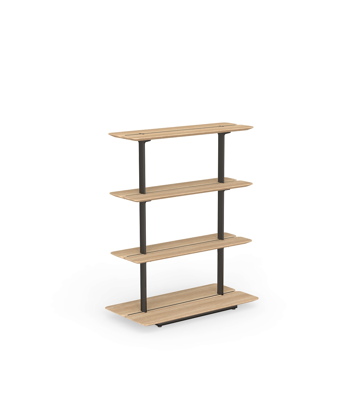 Мебельная система из массива европейского дуба и металлической конструкции. Ширина полки: 90 см. Коллекция также доступна в лакированном исполнении (МДФ). Регулируемые наконечники для впрыска PA.