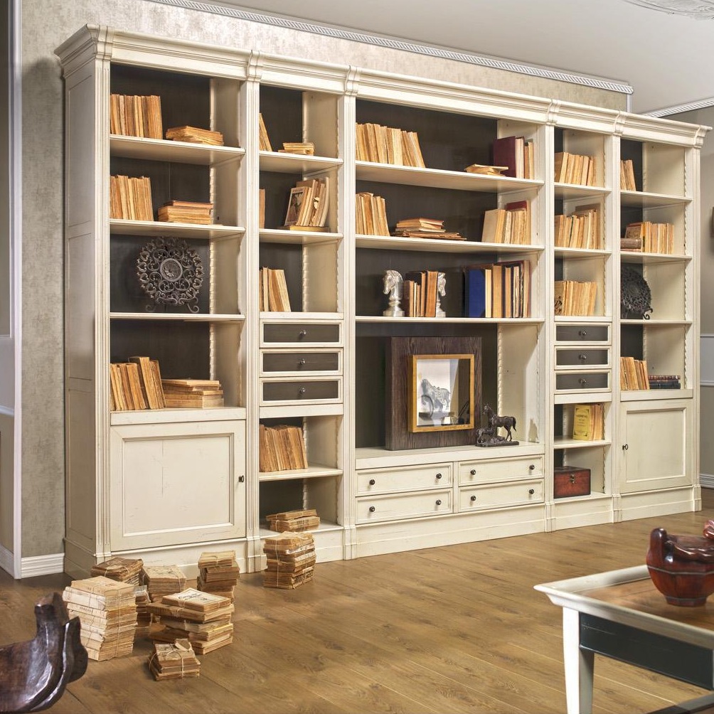Белая стенка Oriente AM Classic решает задачу обустройства зоны хранения на высший балл. Это очень прочная и долговечная мебель из массива, отделанная под старину. Ей не страшны капризы микроклимата, как и те испытания, которые предполагает активная эксплуатация. Вы без проблем разместите на полках и в ящиках многочисленные книги, коллекционные вещи, услаждающие взгляд аксессуары. Для телевизора место тоже найдётся.