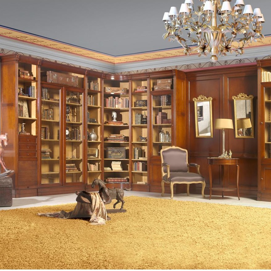 Корпусная мебель Oriente замечательно смотрится в классических гостиных, обитатели которых ценят эксклюзивные вещи, создаваемые на заказ. В окружении таких стеллажей чувствуешь себя владельцем поместья с многовековой историей, графом, не меньше. Хочется отправиться на охоту, сыграть партию в вист или проделать что-то ещё в таком духе.