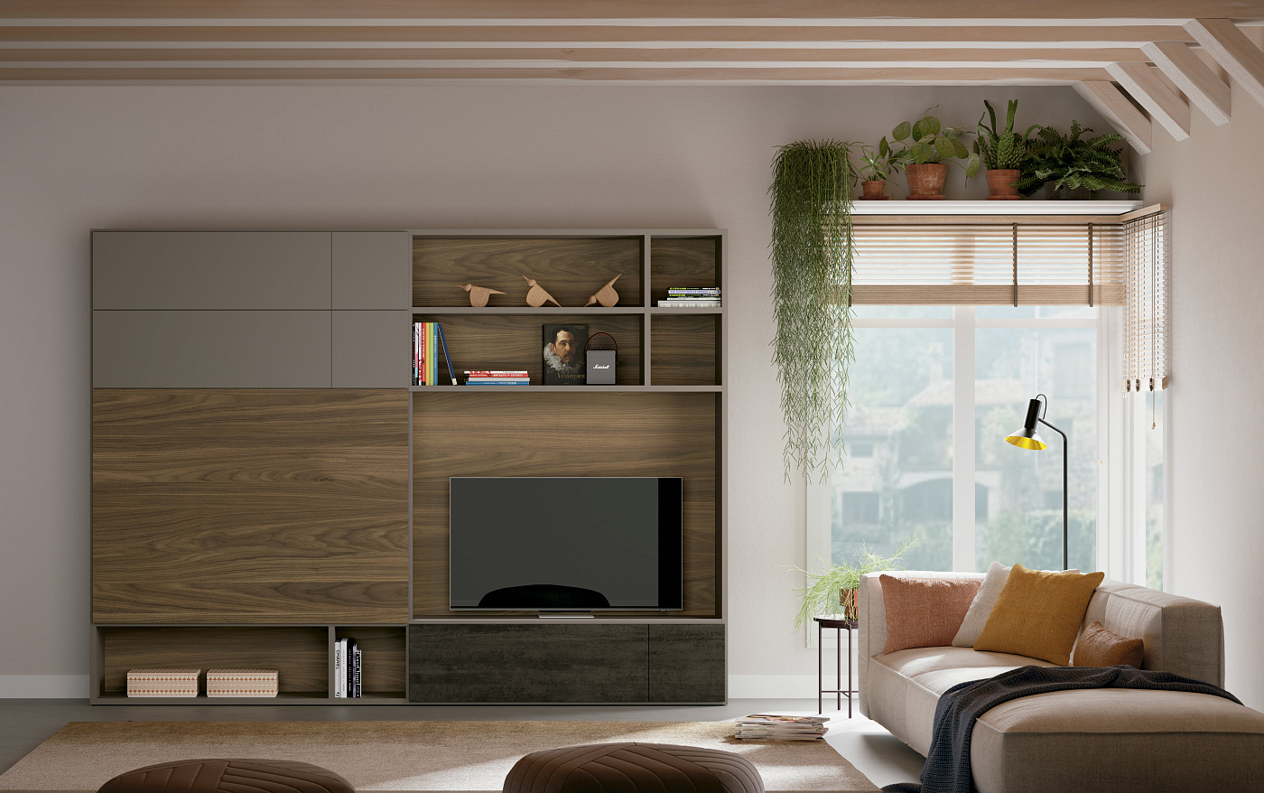 Стенка под ТВ Mondrian отделка керамикой с подсветкой