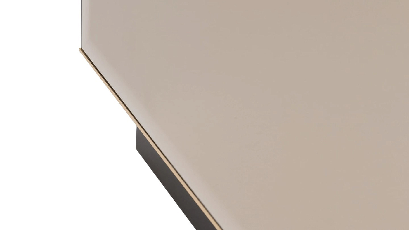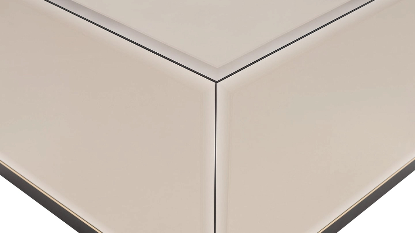 Журнальный столик GRANADA, облицованный секциями бронзового зеркала, смягченными скошенным краем, одновременно вписывается в интерьер и выделяется на нем. Изящно отделанный матовой латунью корпус в форме коробки расположен на утопленном основании, изготовленном из темного лакированного дерева.