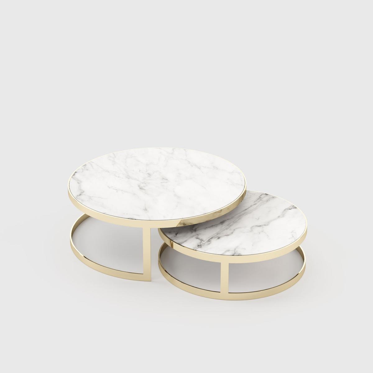 Lua – это набор круглых журнальных столиков с железной рамой и глянцевой поверхностью. Уникальное изделие, которое может как с маленькими так и большими формами, чтобы преобразовать ваш дизайн интерьера.