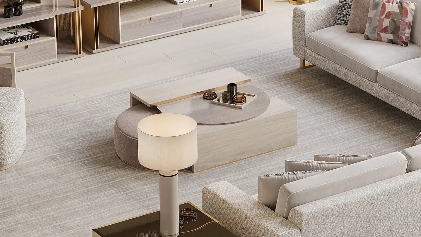 Одна из самых модных моделей MAINE design предлагает два в одном. Геометрический журнальный столик, изготовленный из контрастного деревянного шпона с металлической отделкой, выдержан в стиле постмодерна, а под ним небрежно расположено круглое сиденье с мягкой обивкой.