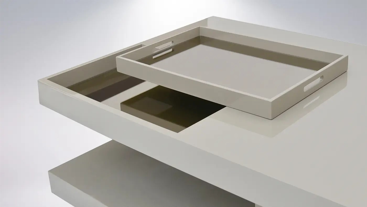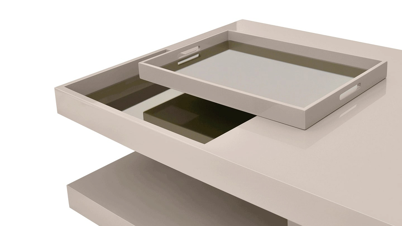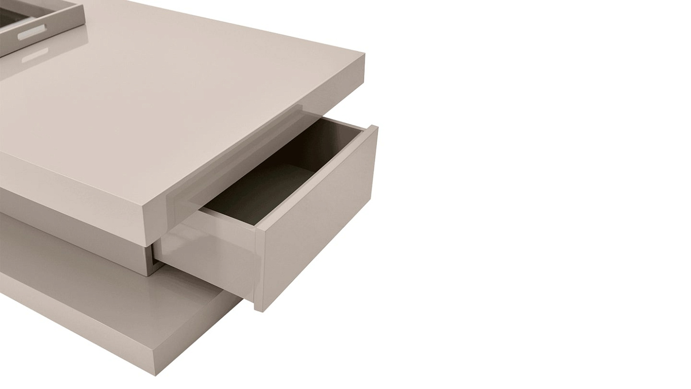 Журнальный столик SALDANHA из лакированного дерева, вдохновленный архитектурой в стиле модерн, таит в себе несколько сюрпризов. Консольная поверхность, которая включает в себя съемный лоток, нависает над основанием и укреплена утопленной секцией, скрывающей потайной ящик.