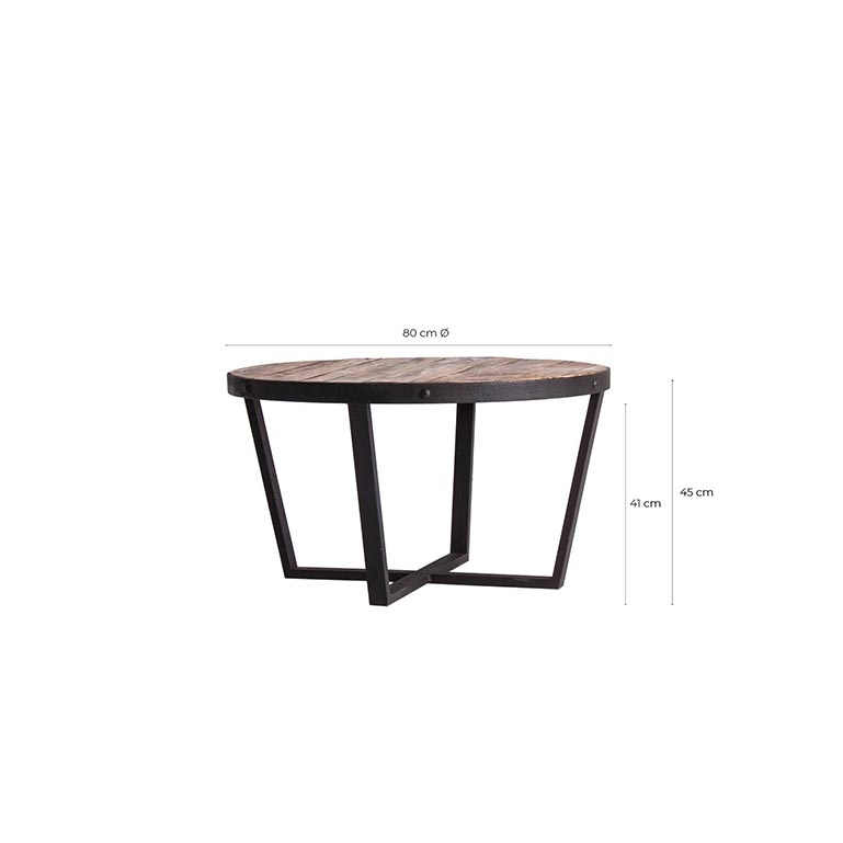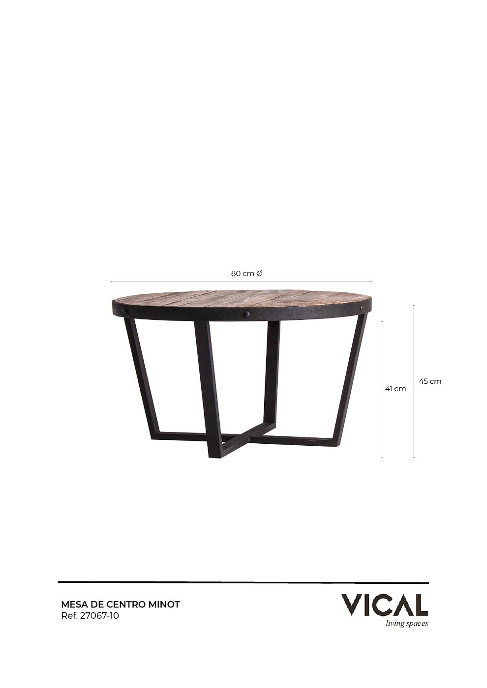 Индустриальная эстетика с элементами вторичной переработки. Круглый стол Minot сочетает в себе металлический каркас и столешницу из переработанной сосны состаренного коричневого оттенка. Ширина: 80 см, Глубина: 80 см, Высота: 45 см