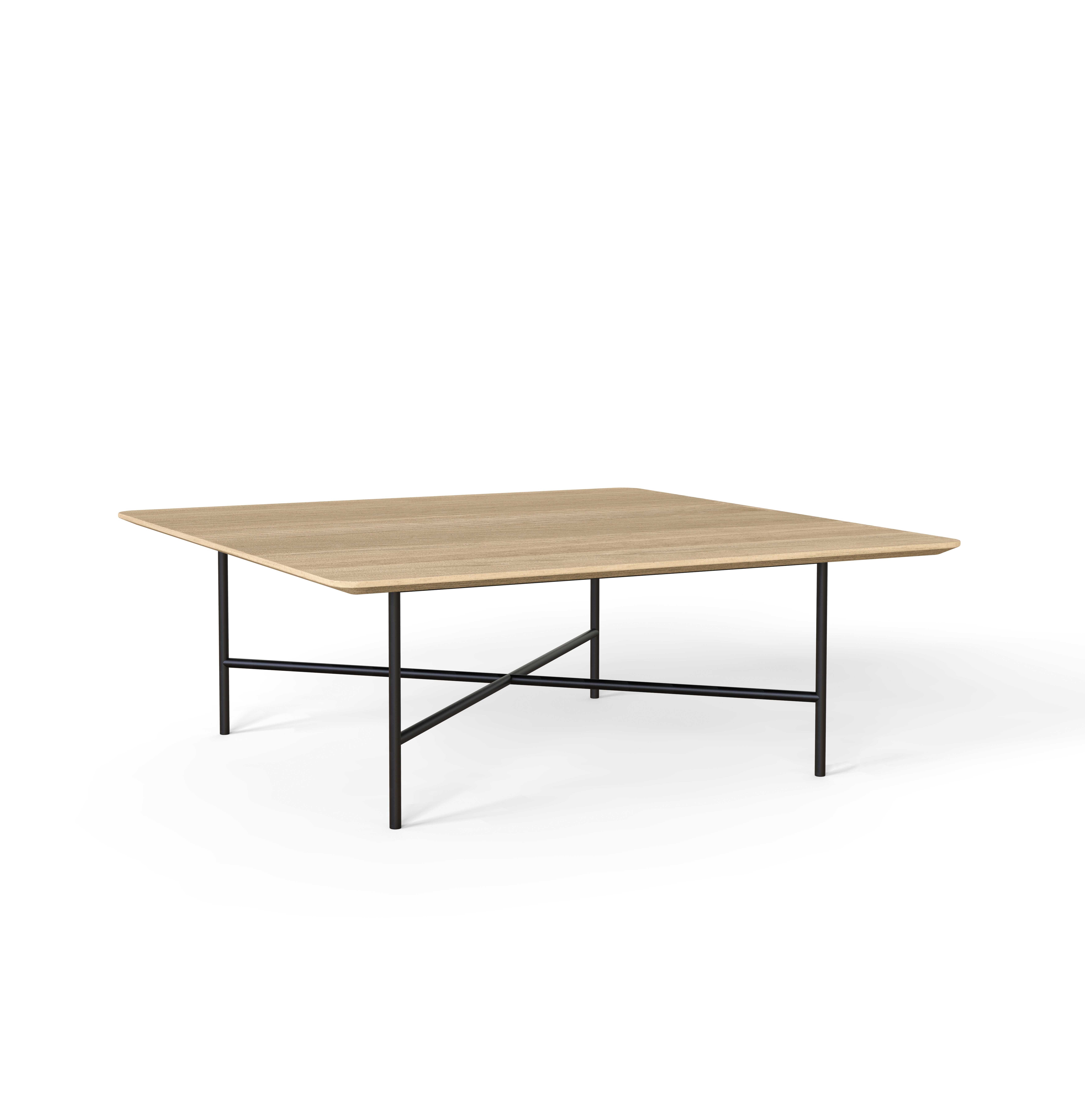 Столешница из массива европейского дуба с сечением 0,83 дюйма. Каркас из нержавеющей стальной трубы, отделан полиэфирным порошком. Коллекция также доступна в лакированной версии (МДФ) и в фанере из европейского дуба. Поставляется в разобранном виде.