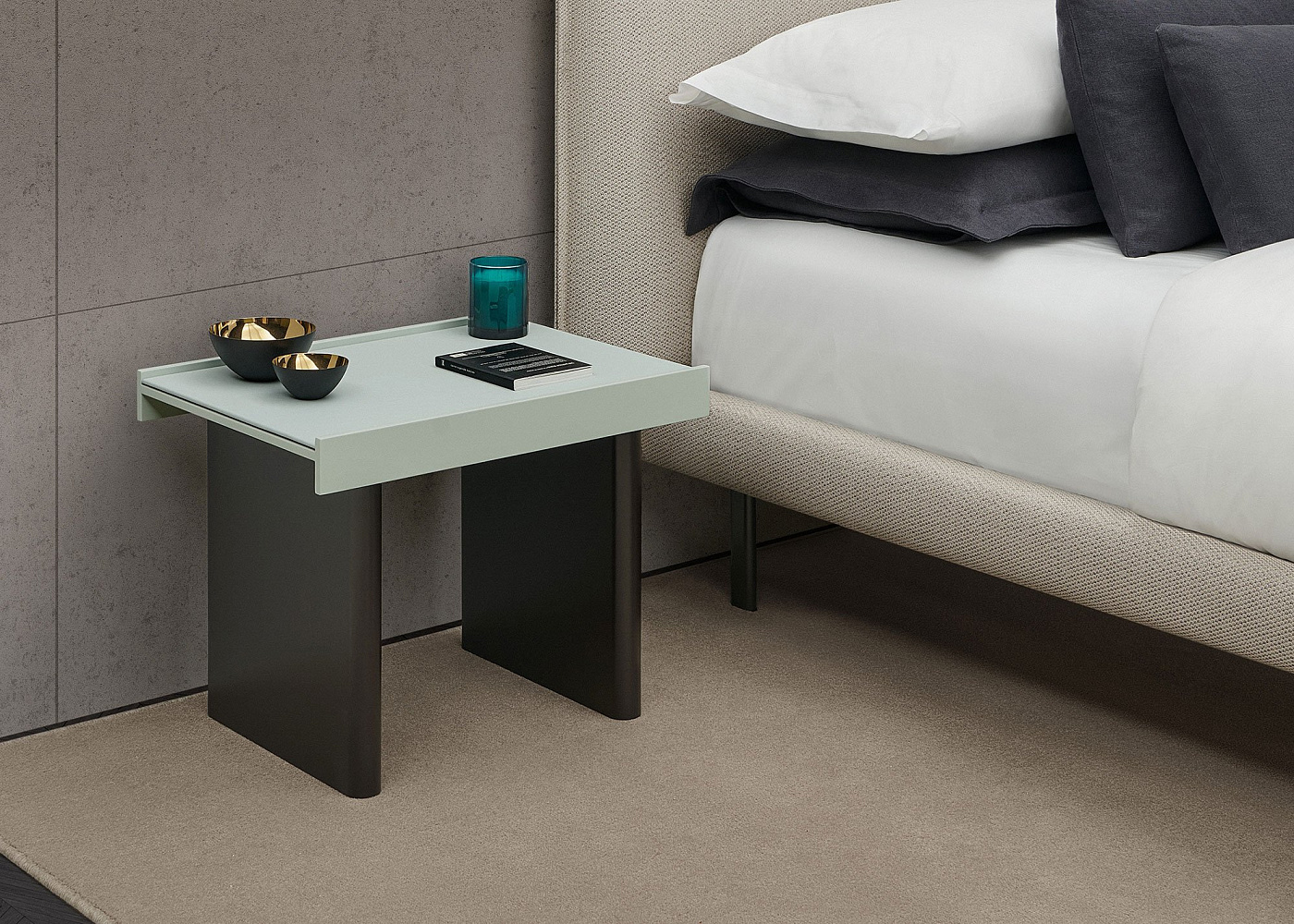 Mika сочетает в себе формы и отделку, создавая гармоничный и незаменимый дизайн в японском стиле. Широкие основания тумбочки контрастируют с очень легкой конструкционной поверхностью. Древесина каркаса и основания, отделанная американским орехом или натуральным дубом, окрашенная в темный цвет или покрытая лаком разных цветов, сочетается с материалом конверта, который может быть покрыт кожей или фарфором с различной отделкой. РАЗРАБОТАН МАРИО РУИСОМ
