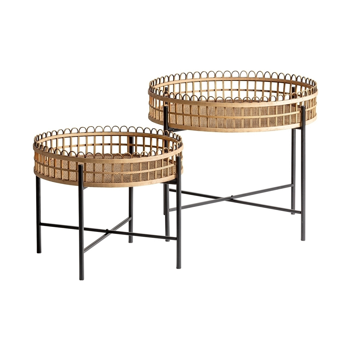 Набор столиков TRAVNIK станут определяющим признаком колониального дизайна вашей обстановки. Объединенные в столешнице ротанг и бамбук усиливают эффект уникального вида, цвета и фактуры. А стройные металлический ножки демонстрируют тенденции для современной мебели.