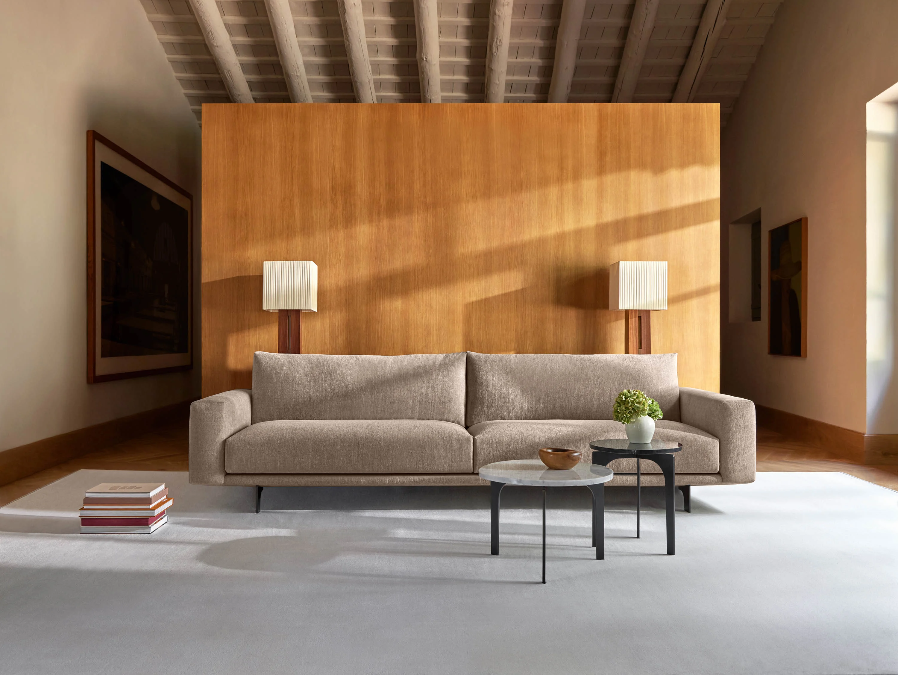Коллекция очень легких и воздушных приставных столиков, опирающихся на три ножки, которые образуют дугу, объединяя металлическую основу с оболочкой из дерева, натурального или технического камня. С использованием органического языка конструкция ножек обеспечивает очень легкий обзор спереди, в отличие от более широких при боковом просмотре. Конструкция этого основания соединяется с языком ножек переднего дивана в его подвесном варианте. РАЗРАБОТАН МАРИО РУИСОМ