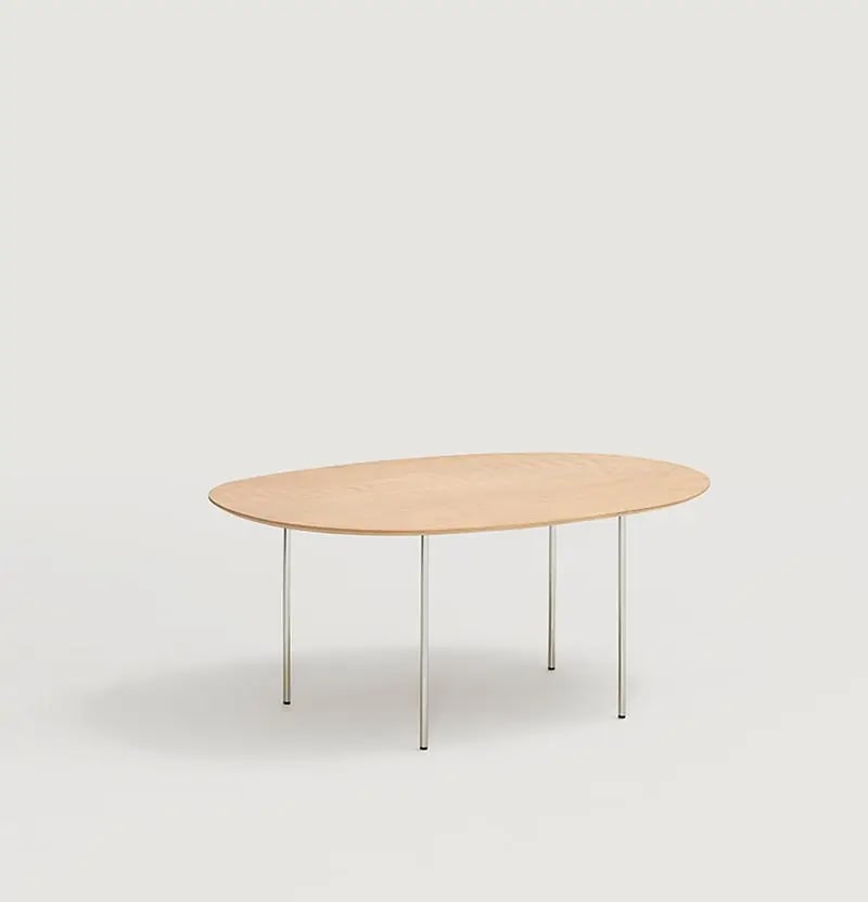Мягкие стулья/пуфы, органической формы, которая может быть использована в многократных пространствах, так как они выглядят по-разному, когда поворачиваются. Основная структура коллекции основана на 15-миллиметровой березовой фанере, обеспечивающей прочность изделию. Покрыта двумя разными огнеупорными пенами, чтобы сделать ее удобной. Ножки из железной трубки 16 мм. Боковые столы различной высоты. Столешницы из ДВП и бука.