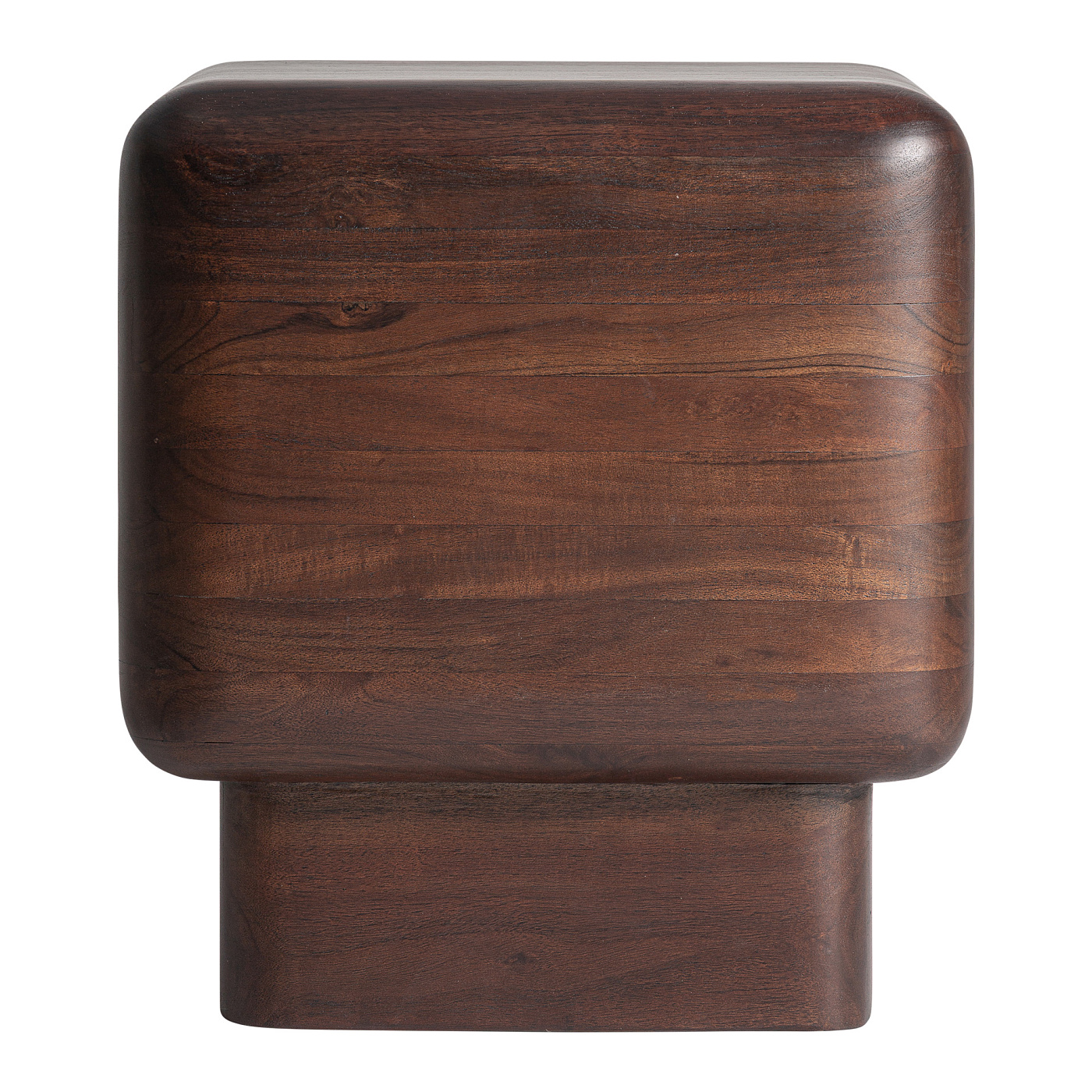 Приставной столик, изготовленный из древесины акации коричневого цвета. Ширина: 42 см, Глубина: 42 см, Высота: 46 см